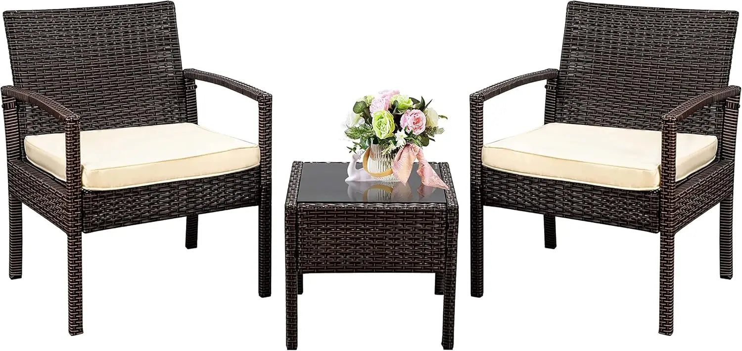 3 Piece Outdoor Patio Furniture Sets, Rattan Conversation Set with Soft Cushion,Wicker Chairs with Coffee Table for Yard Backyad