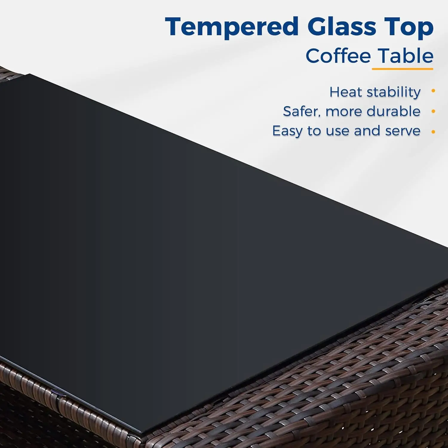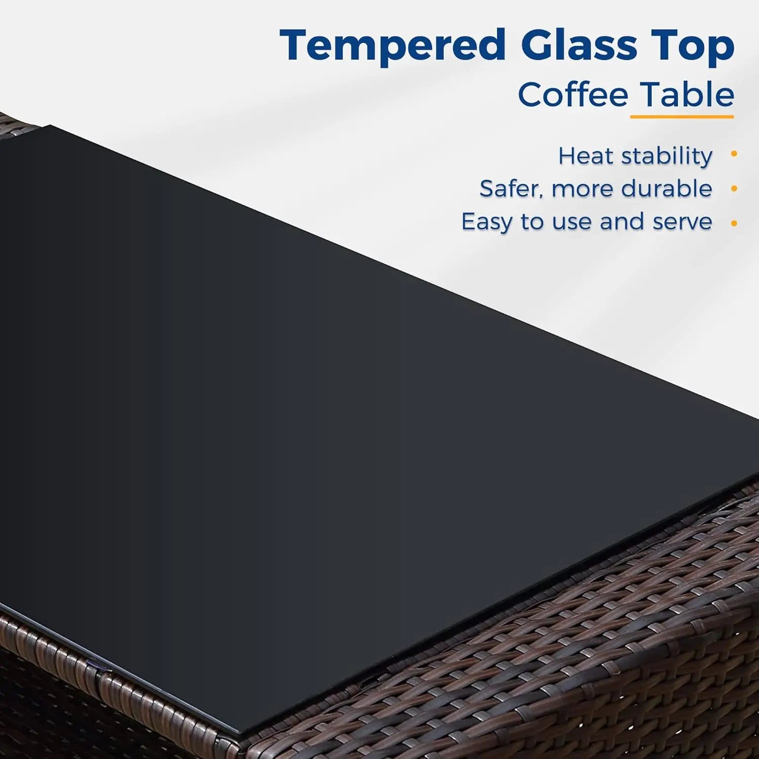 - QUALITY MADE- Expertly finished wicker is hand woven over a sturdy steel frame of the outdoor conversation sets with added reinforcement at the joints for lasting durability. The glass tabletop is easy to clean yet to serve on. Made to withstand the elements in style, this patio furniture set will serve as your alfresco entertaining destination for years to come.