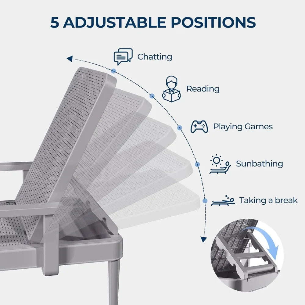 - 5-Position Adjustable Backrest: Customize your comfort with 5 reclining angles from upright lounging to fully flat. Perfect for sunbathing, napping, reading, or socializing - effortlessly find your ideal relaxation position.