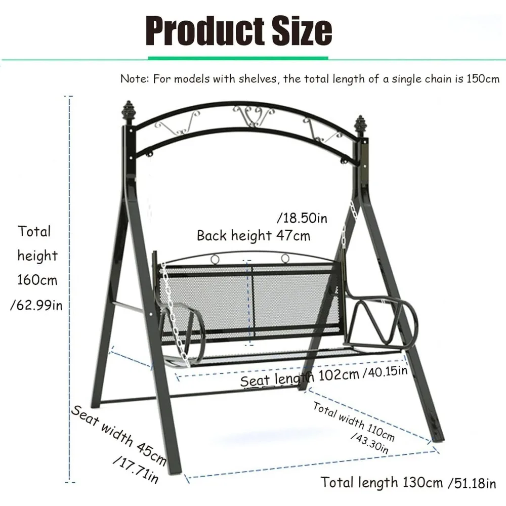 - 🪑 Comfortable Seating for 2 to 3 Adults Spacious bench with breathable mesh or cushioned seating supports up to 450 lbs, making it perfect for relaxing with family or friends in any outdoor setting.