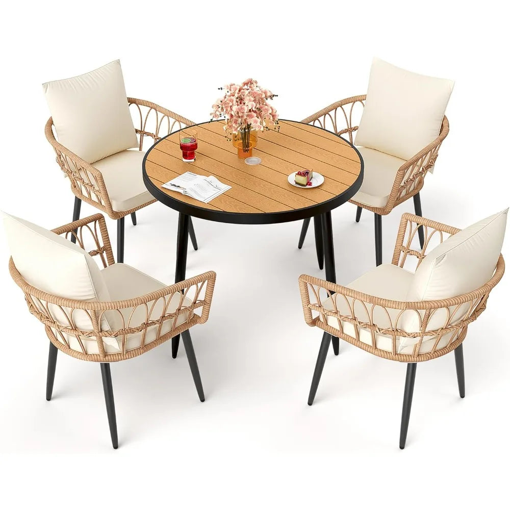 ARORA 5-Pieces Patio Dining Set with Wood Table Top,All-Weather PE Rattan Patio Furniture Set, Outdoor Dining Furniture with Removable