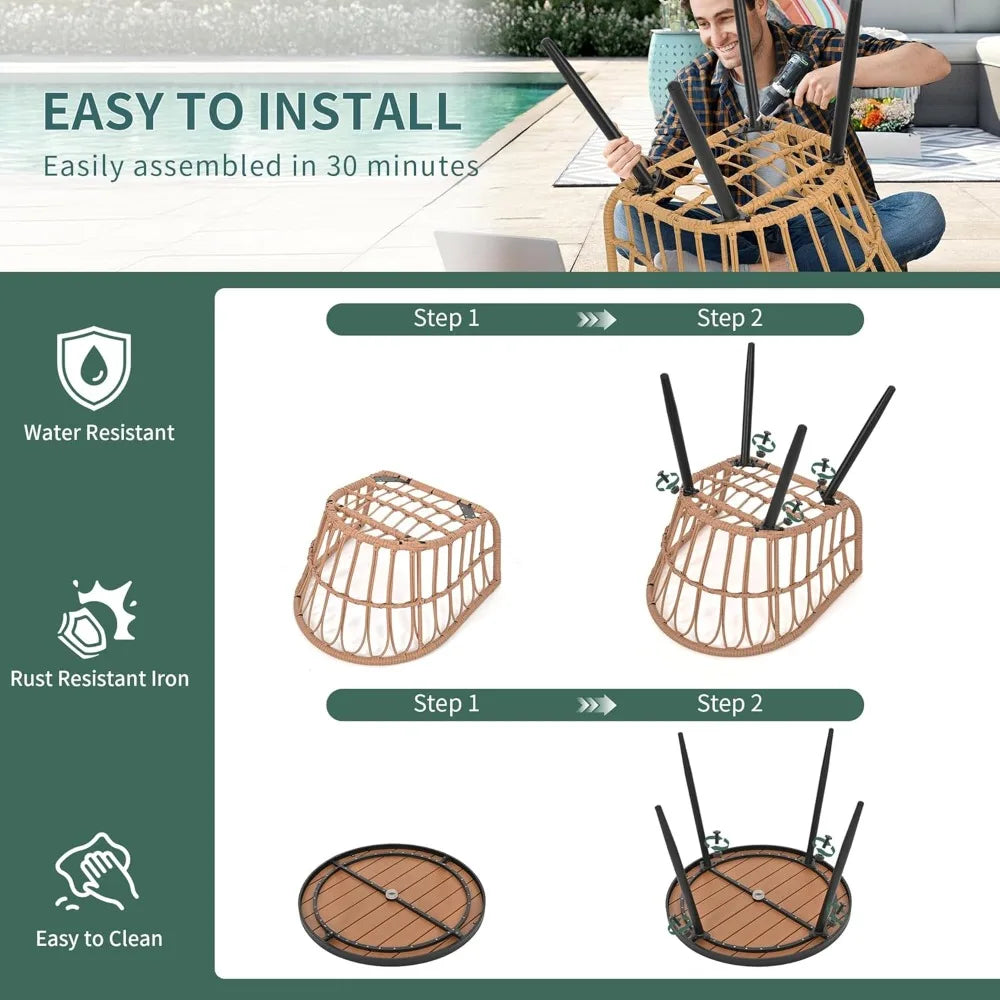 - 【Weather Resistant Materials】Our patio table and chair set built with sturdy iron construction and premium PE rattan, this set withstands harsh conditions without cracking or fading. Each chair supports up to 330 lbs, ensuring long-term reliability. The weather-resistant materials ensure long-term use for many years to come.