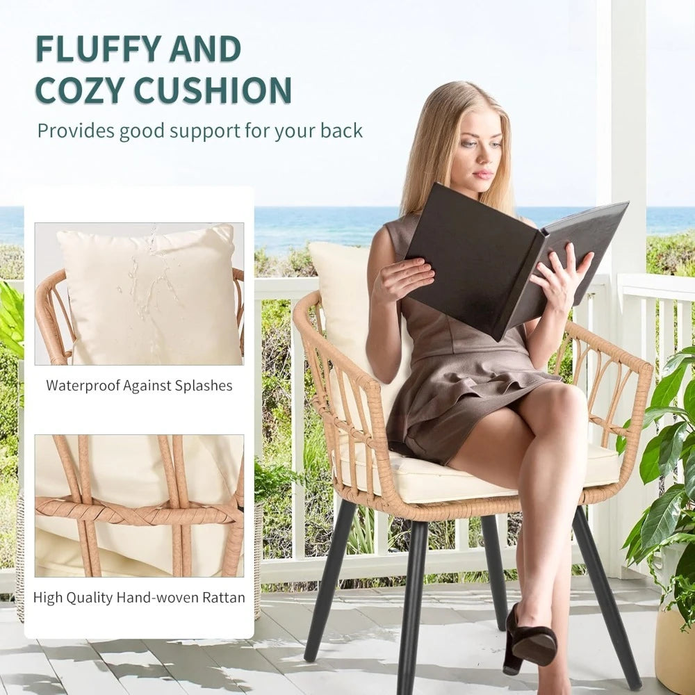 - 【Thick & Washable Cushion】Enjoy long-lasting comfort with our waterproof and UV-resistant cushions, specially designed for outdoor durability. Each cushion is detachable and washable for easy maintenance. The comfortable cushions offer excellent back support and are perfect for you and your family to relax and enjoy a pleasant outdoor time. And this outdoor dining set is also suitable for holding parties on your patio, deck or poolside.