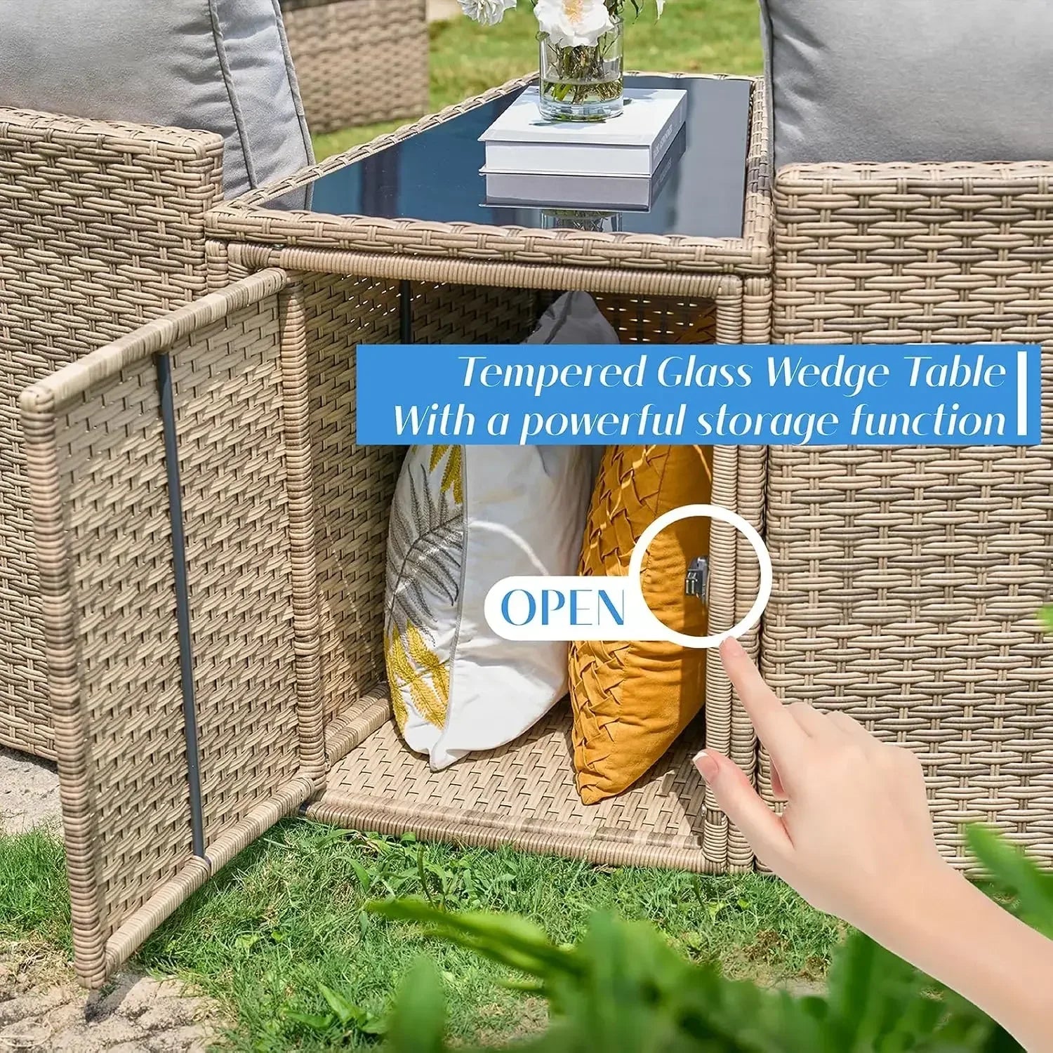 - Sturdy and Durable: For stability and safety, outdoor furniture combo frames are constructed with sturdy metal frames. All-weather PE rattan woven by pure hand provides longer use.