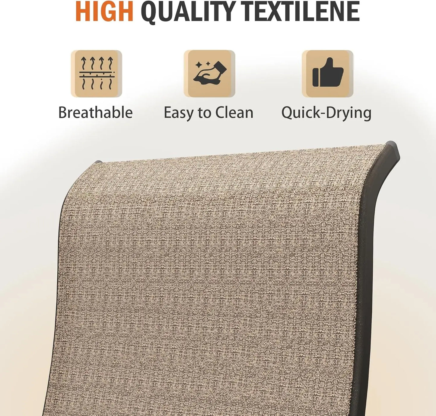 - Quick-Drying Textilene Fabric: Our outdoor dining chairs are made of thick textilene fabric material, with a bright overall color that is not easily faded. And the fabric has reasonable extensibility, which ensures the comfort of sitting on the human body while also ensuring the durability and resistance to damage of the fabric. Easy cleaning and a certain degree of waterproofing are also one of its advantages