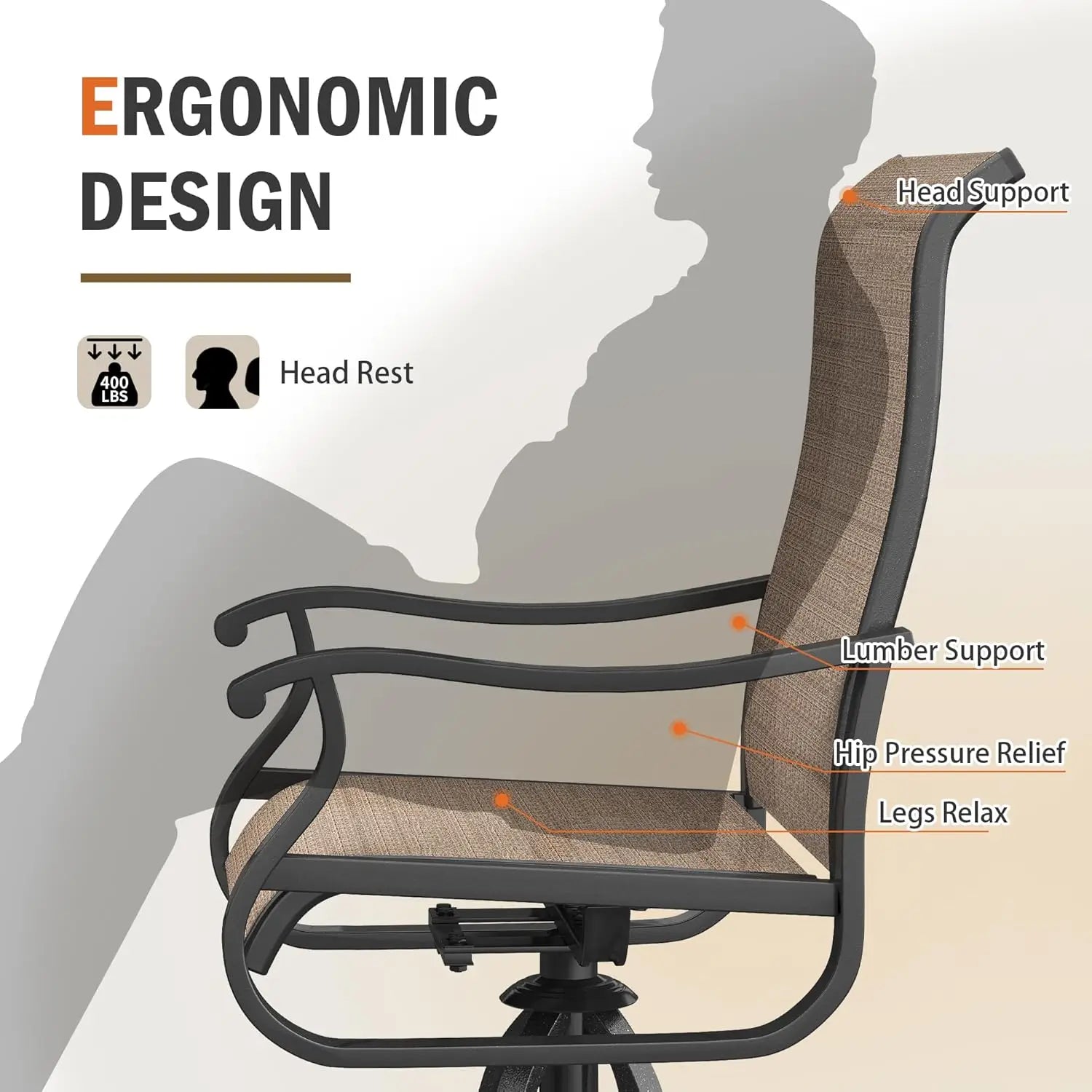 - 360° Swivel & 15° Rocking : The patio swivel chairs support 360-degree noiseless rotation, whitch broden your view and facilitate communications. 15° rocking design ensures your leisure time in the chair,you can adjust your posture freely