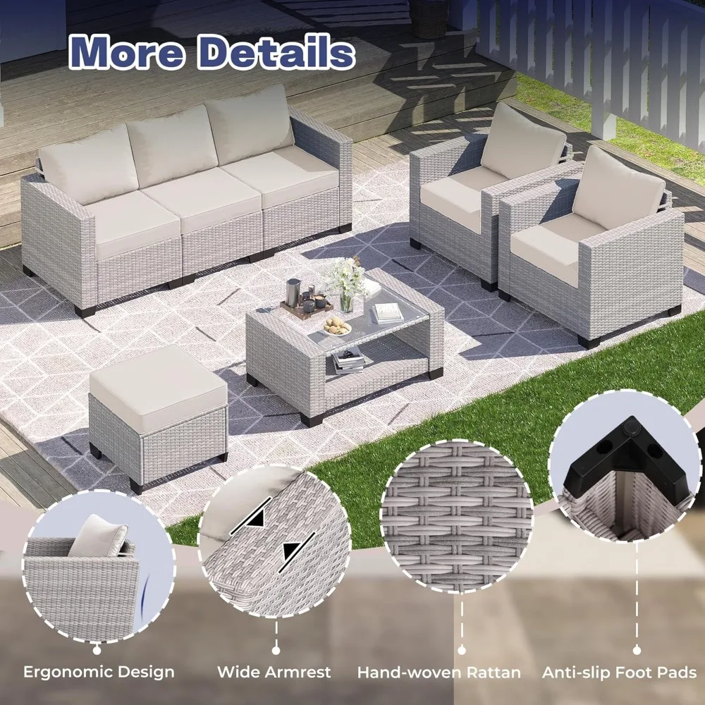 - Wide Application: The outdoor sofa is suitable for both outdoors and indoors, such as your patio, balcony, deck, backyard porch or pool, the flexible combination and the modern design makes this sofa set ideal for enjoying leisure time with your family