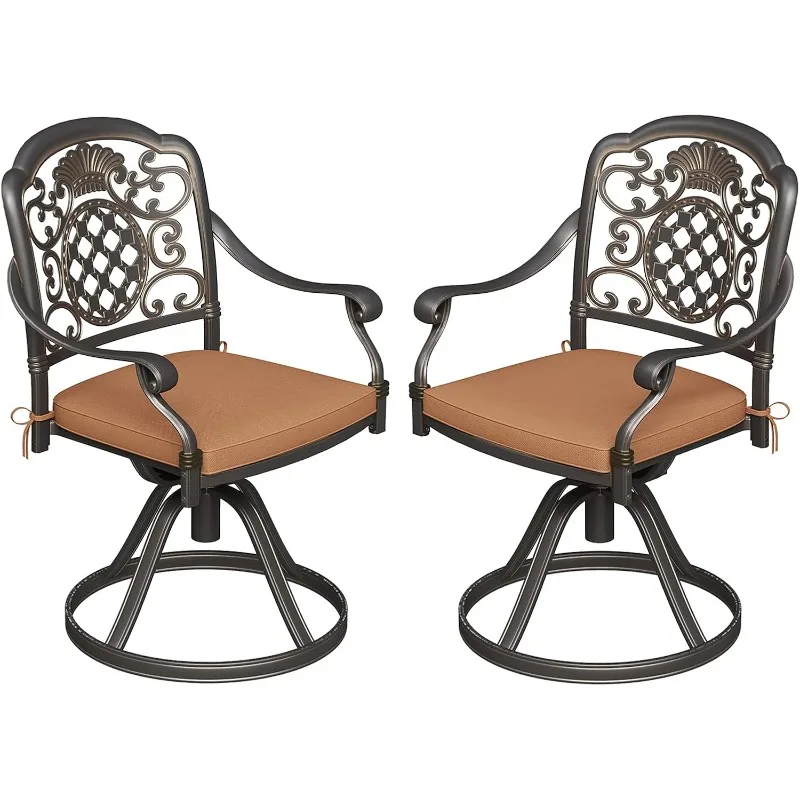Swivel Patio Chairs Set of 2, Aluminum Outdoor Chairs with Removable Cushions, Metal Frame, Comfortable for Garden, Balcony,