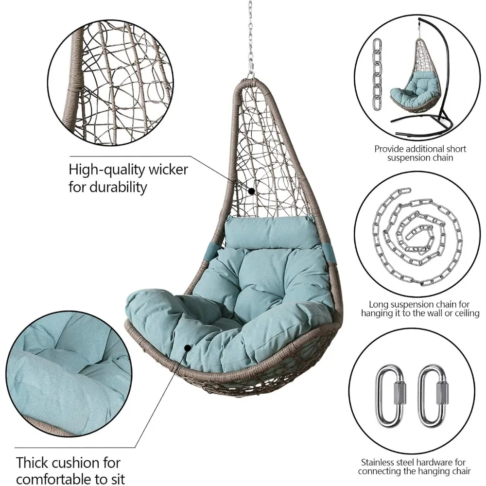 - This wicker hanging basket chair includes a 100% polyester seat cushion and a headrest pillow, making a extraordinary comfortable place to lounge