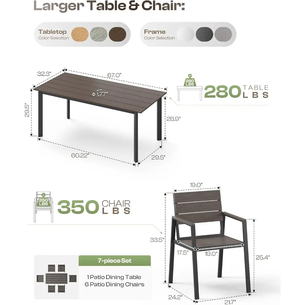 - 【Assembly & Care】This outdoor dining table set includes 6 chairs and 1 table. Assembly is quick and straightforward as clear instructions are provided, and no special tools are required. Note that the outdoor dining furniture set may arrive in separate packages. We offer 24/7 customer support to ensure your issues are resolved promptly.