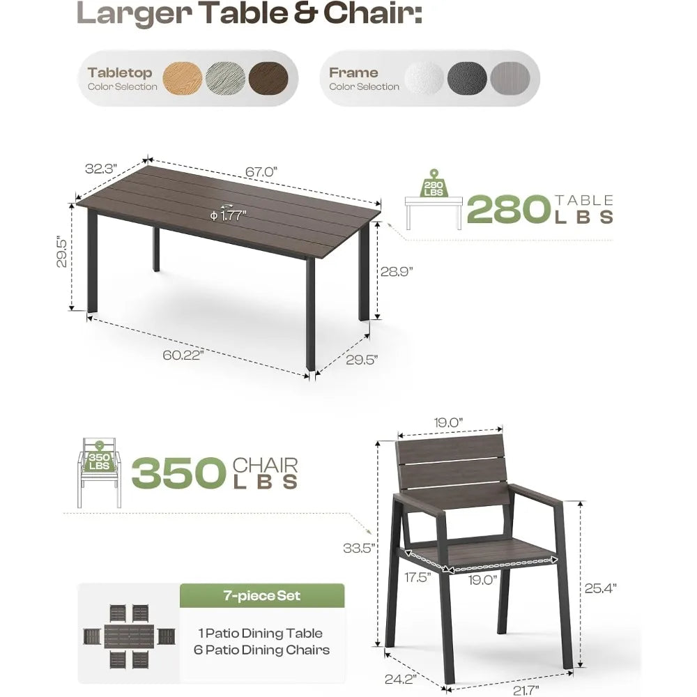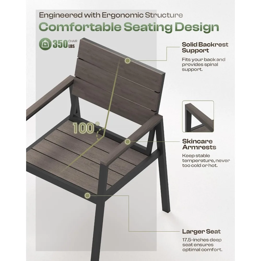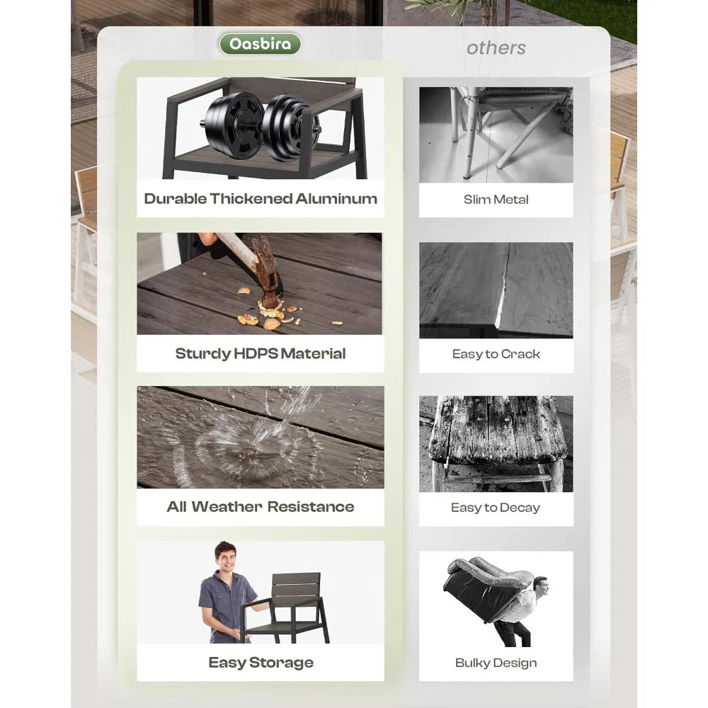 - 【Premium Materials】This patio dining set features an aluminum frame with weather-resistant coatings, which make it lighter and stronger than iron. Also, its HDPS wood-like panels are UV-resistant and fade-proof, ensuring long-lasting beauty. Compared to conventional metal furniture, outdoor dining sets are more sturdy and ideal for outdoor use.