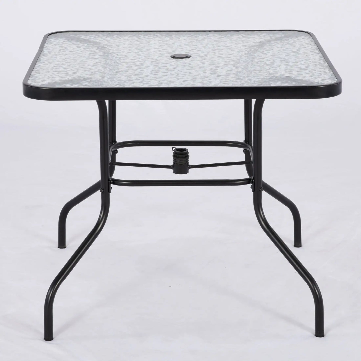 Step up your outdoor eating experience with the new Albany Lane 5 Piece Dining Set in Black and Red. This set is designed for lasting use and withstands the elements with its weather-resistant treatment. The ventilated sling fabric requires minimal maintenance, ensuring effortless care. The tempered glass tabletop includes an umbrella hole for added convenience. With a sleek black frame and matching sling fabric, this dining set complements any outdoor space. Its folding design also allows for flat storage when not in use. Ideal for patios, lanais, porches, gardens, yards, and pool areas.