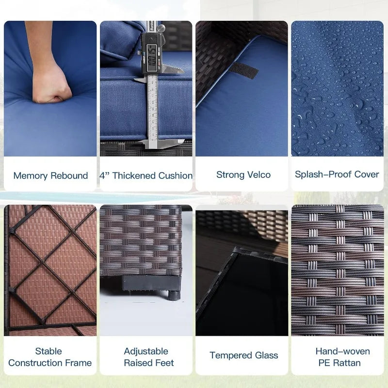 Combination Flexibility:The outdoor patio furniture set includes 6 middle sofas,2 left sofa and 2 right sofa,2 coffee tables.Whether it's a balcony,poolside or lawn,they all blend in perfectly at will,allowing you to create an outdoor meeting area that is both functional and beautiful as you wish.