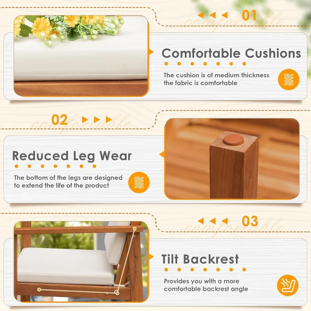 - Size: Table- 20" (L) X 15" (W) X 20" (H) ,Chairs-24" (L) X 17" (W) X 32" (H),Beach-48" (L) X 17" (W) X 32" (H)