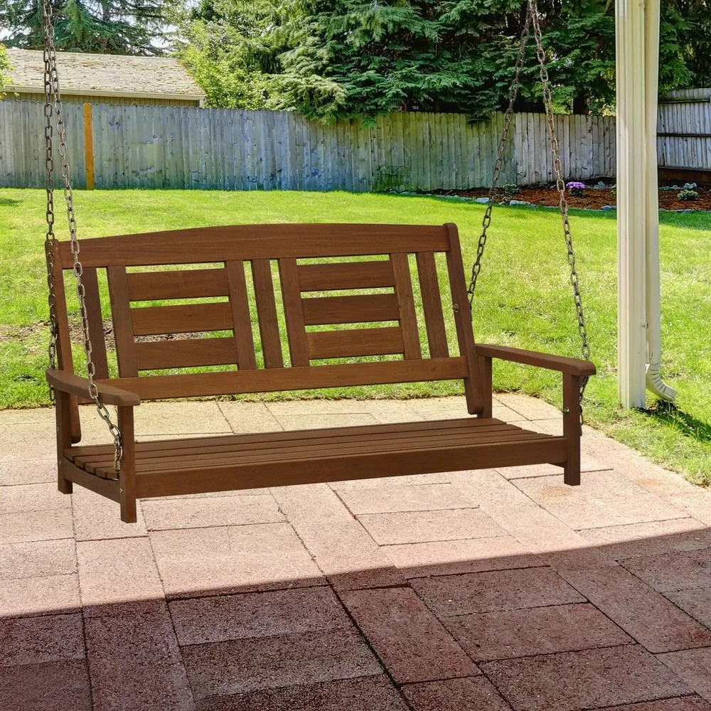 Hardwood Porch Swing with Heavy Duty Metal Chains Adirondack Style 2 Waterproof Teak Oil Finish Meranti Wood 400 lb Capacity
