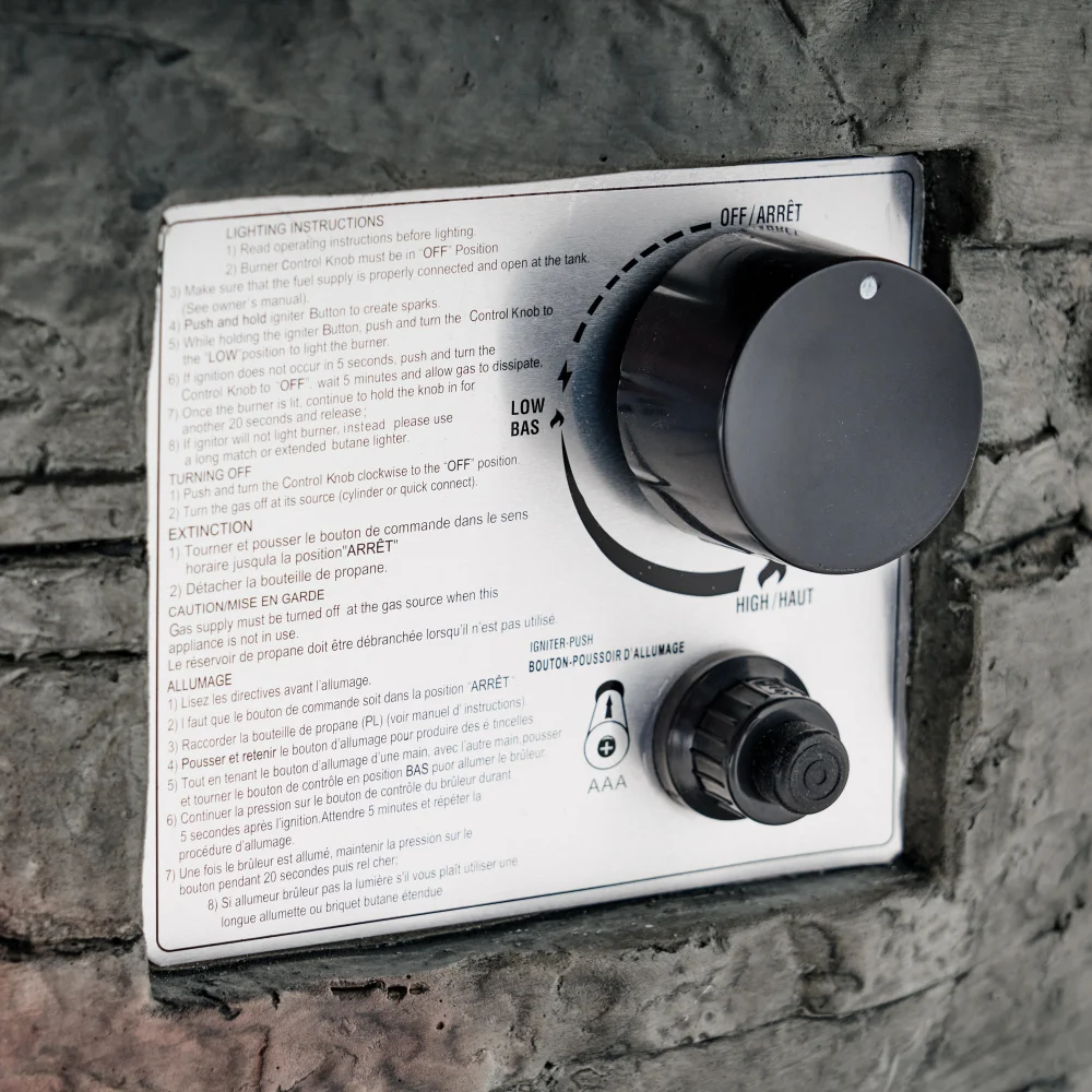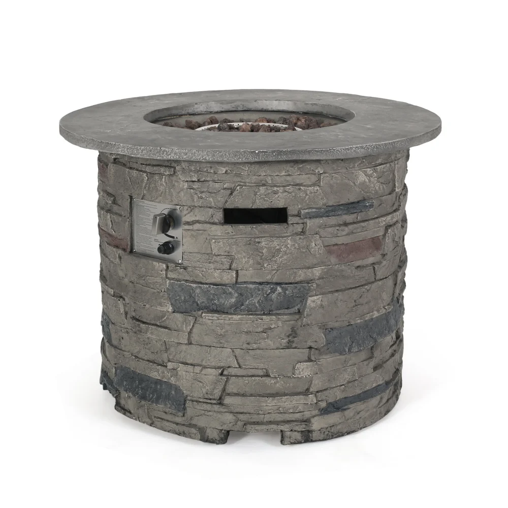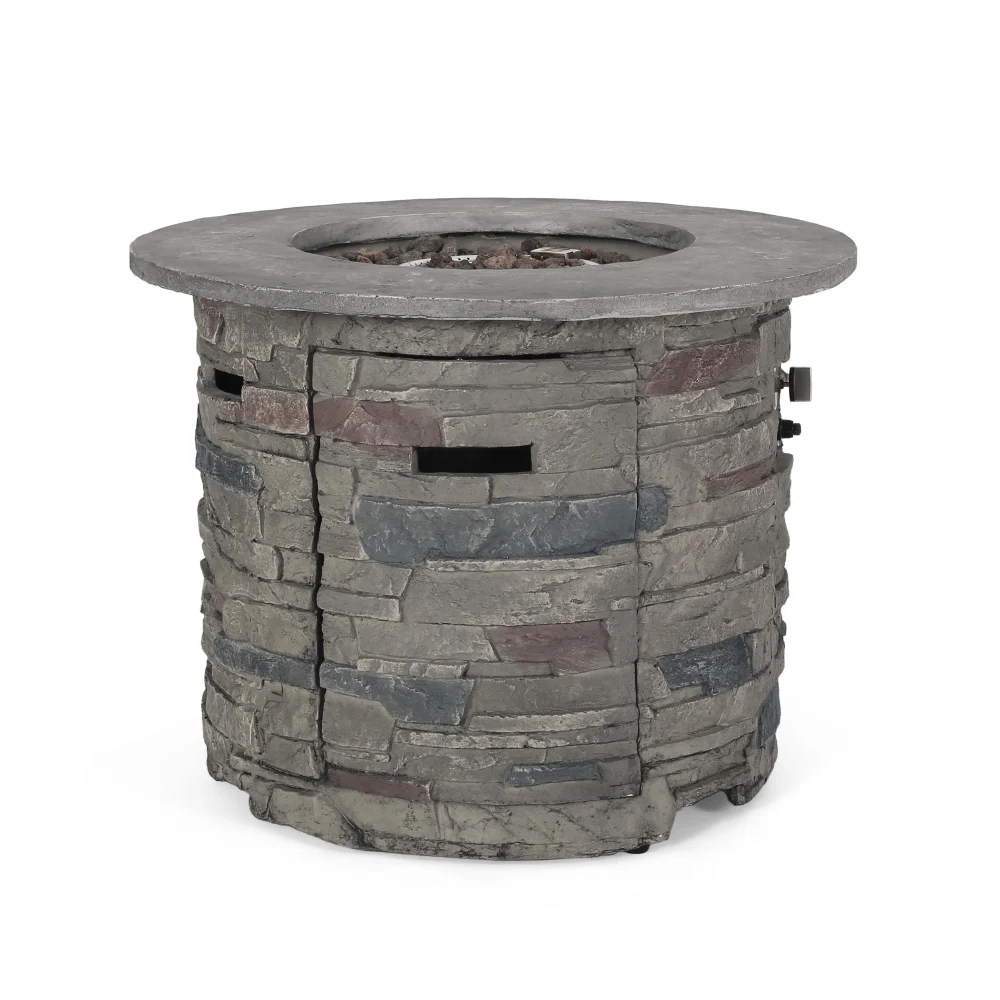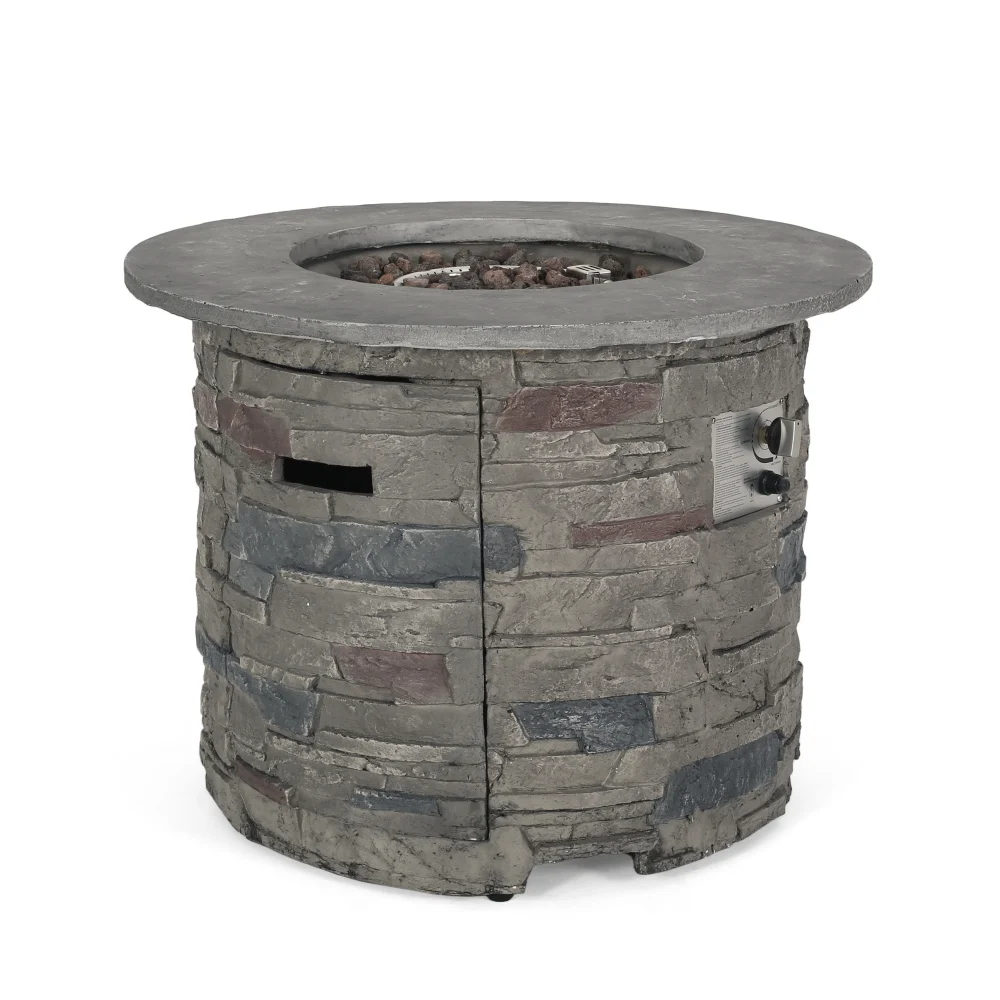 Modern Design: Our transitional fire pit table combines functionality and style to enhance your outdoor space. Crafted with lightweight concrete and featuring a natural stone finish with a gray top, this fire pit table exudes a classic and timeless design. The circular shape adds visual appeal and ensures a cozy seating arrangement for gathering around the fire. - Powerful Heat Output: The transitional fire pit table runs on only propane gas, providing a powerful 40,000 BTU. Simply turn on the gas valve, light the flame using the manual ignition system or the built-in electronic ignition button, and adjust the flame intensity as desired.