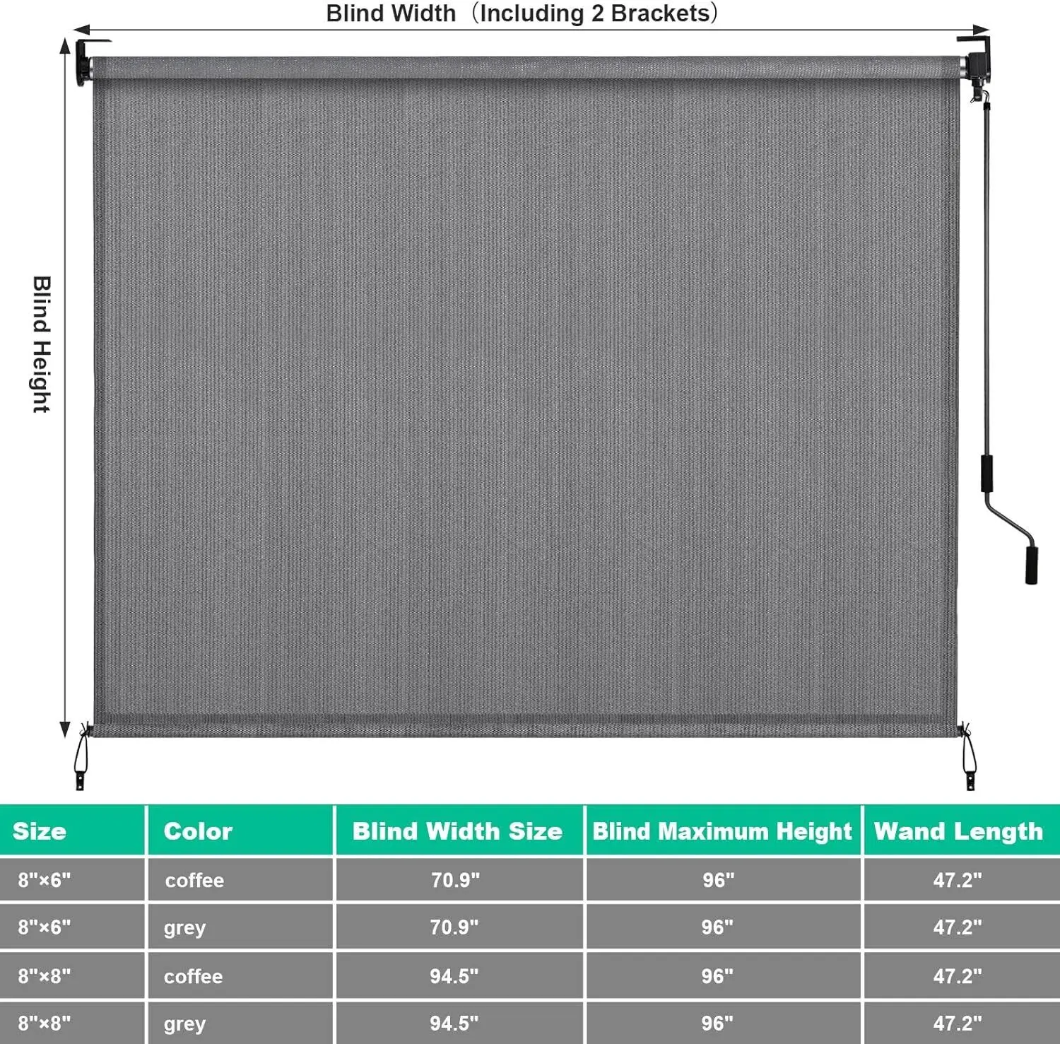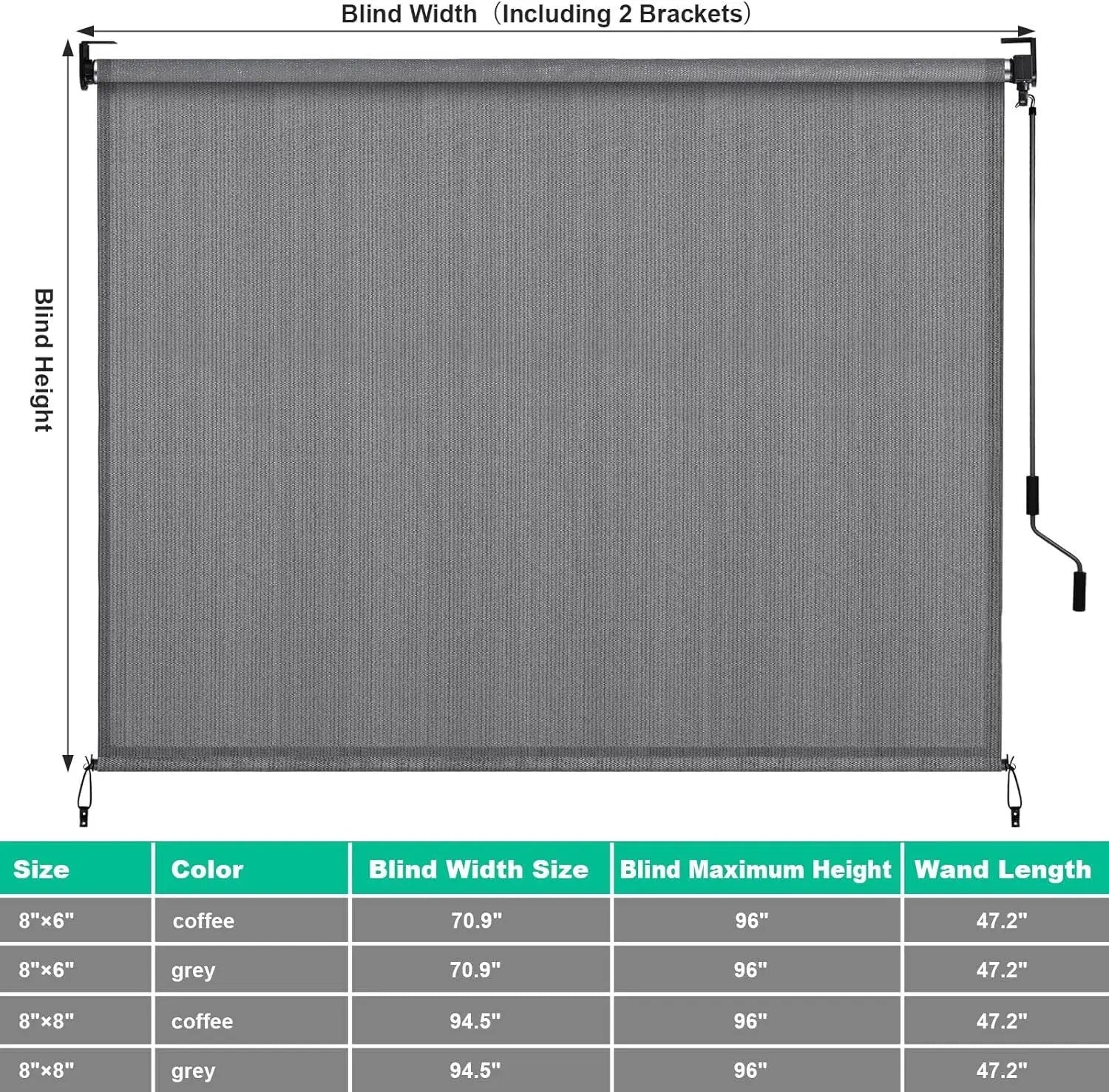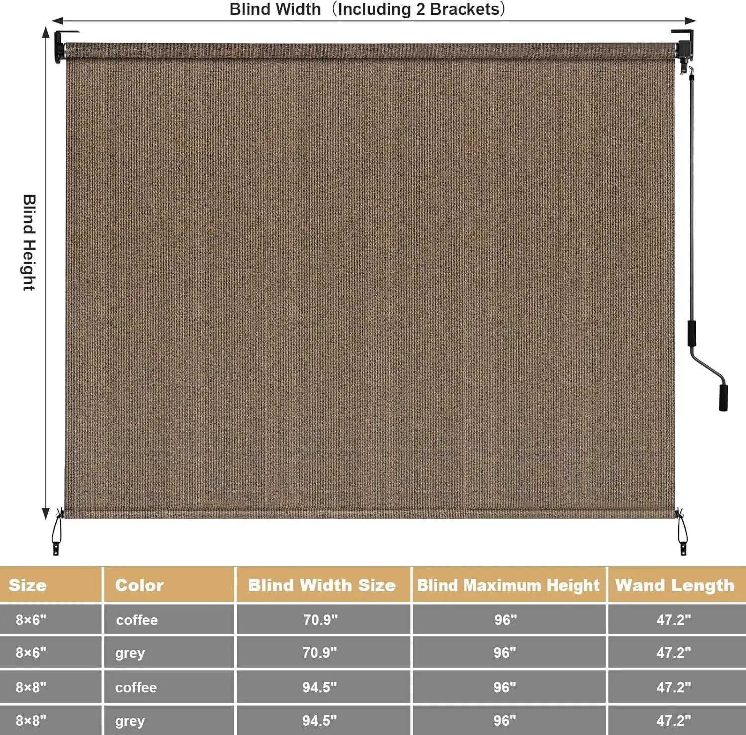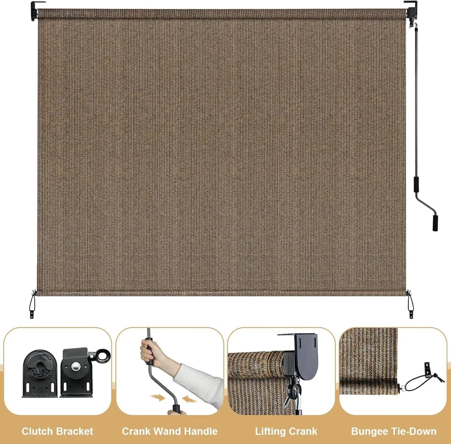 Effortless and Safe Operation:Equipped with a manual crank system, this patio roller shade allows for seamless and easy adjustments. The cordless design enhances safety for families with children and pets, providing peace of mind without compromising on functionality.