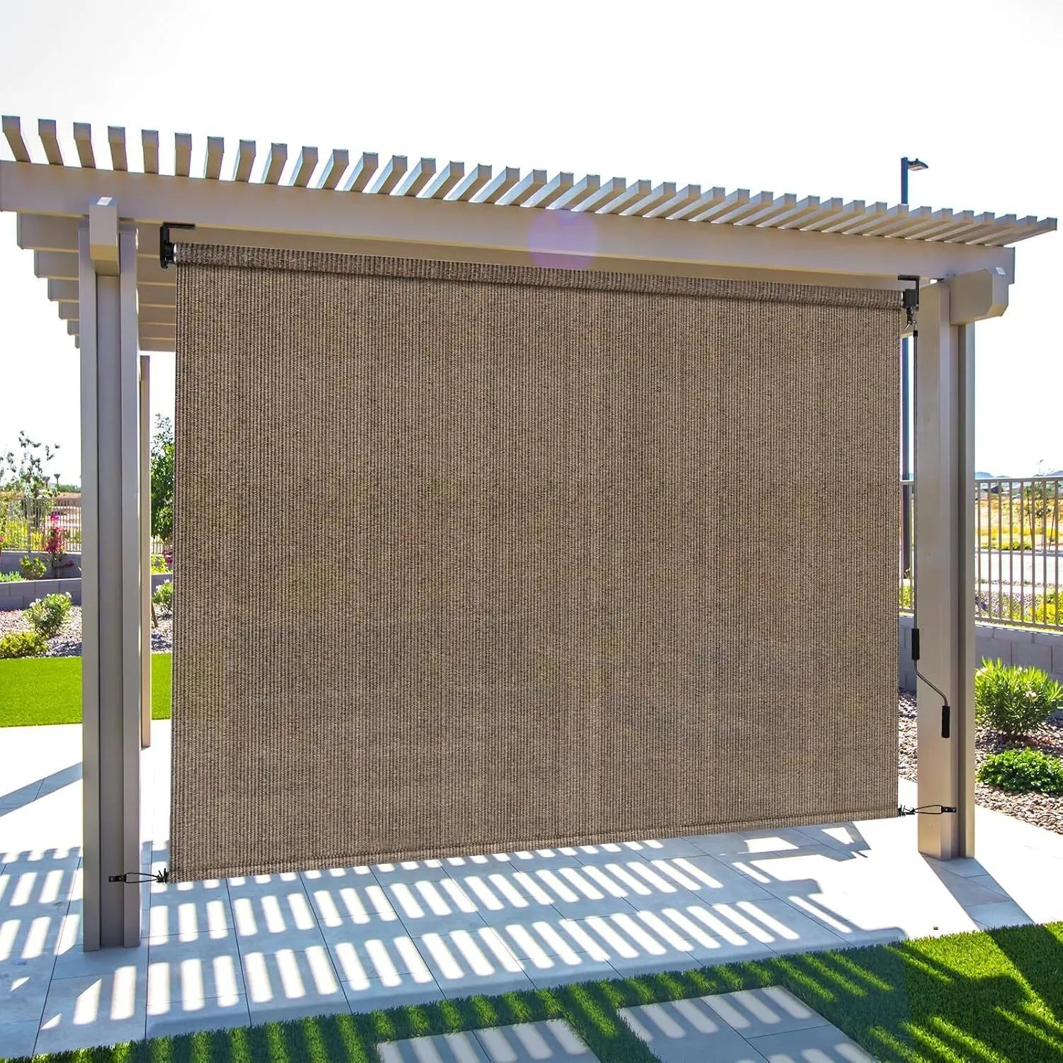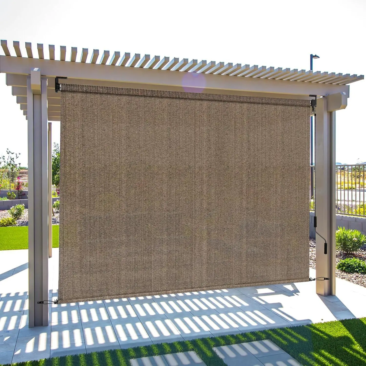 Outdoor Roller Sun Shade HDPE Patio Privacy Shades Screen Aluminum,Cordless Patio Roll Up Blinds, Exterior Shade Cloth Roll