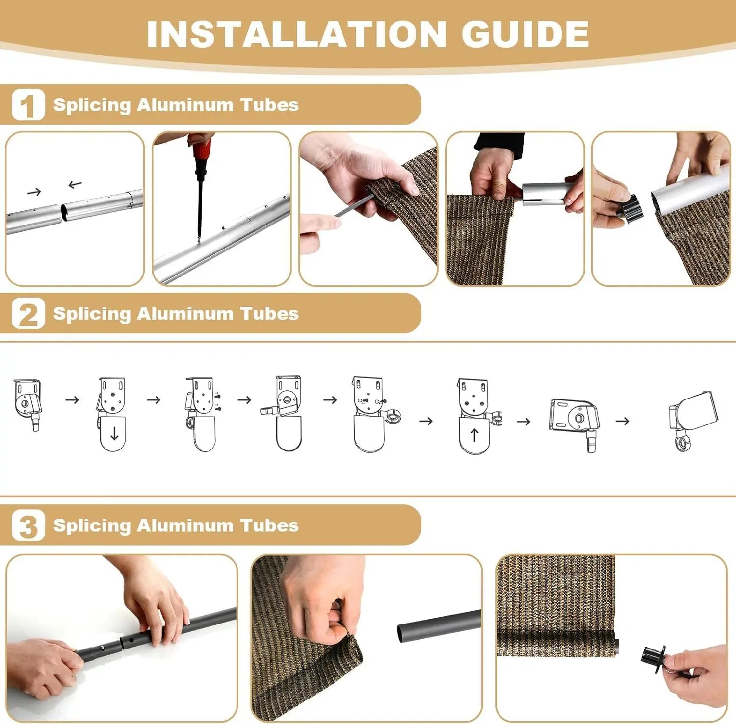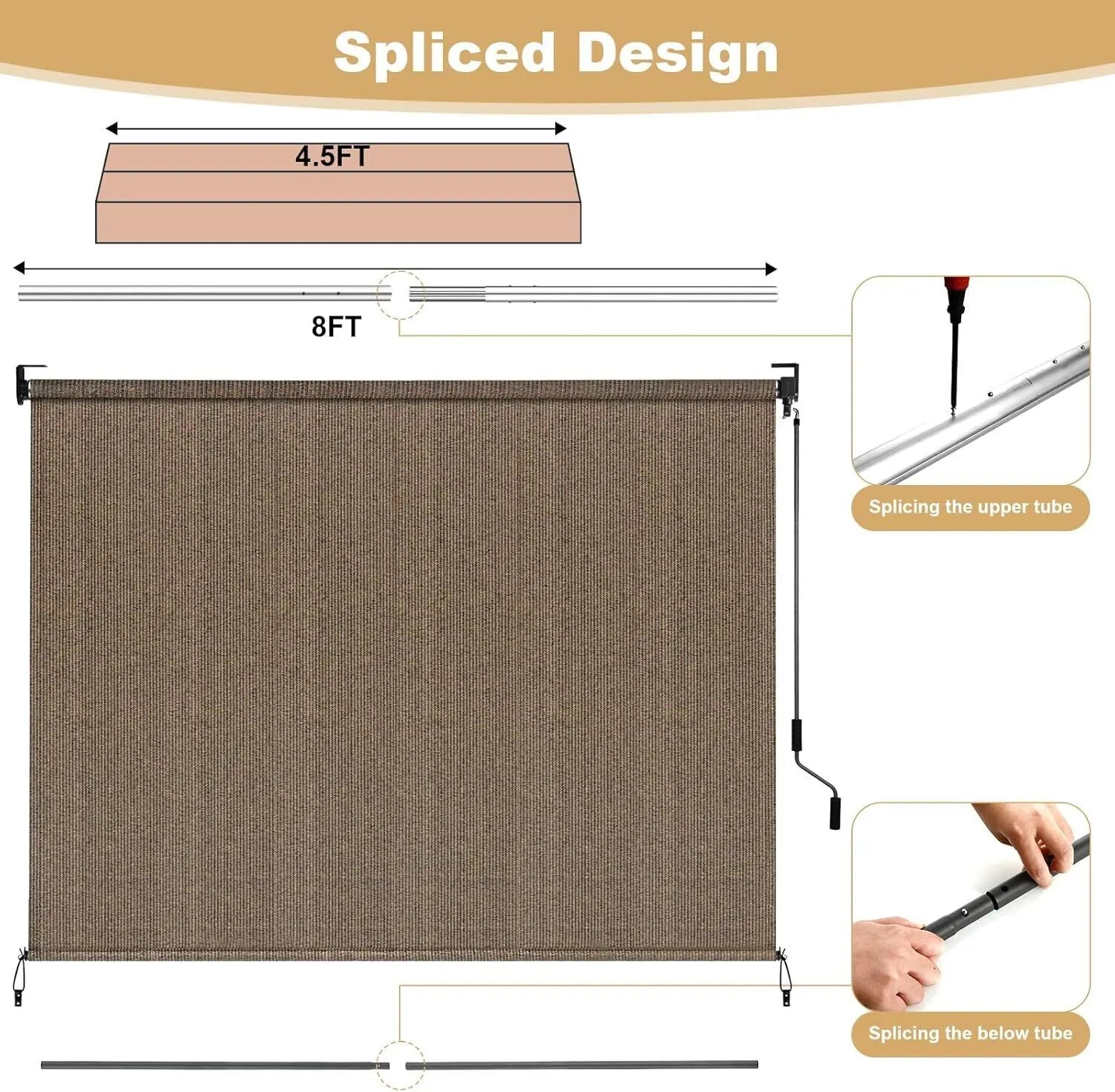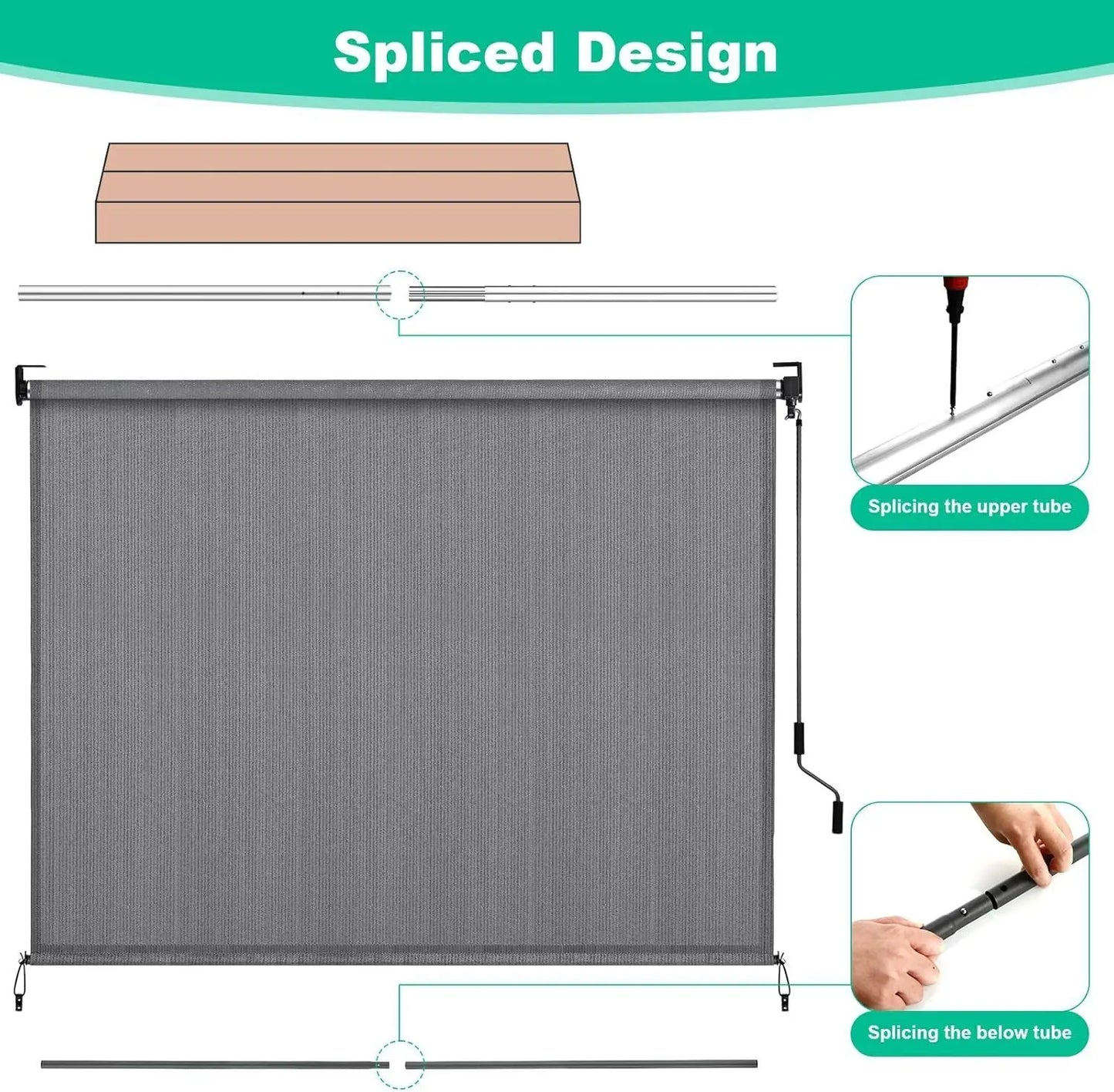 Flexible and Robust Design:This outdoor roller shade features a spliced tube design for straightforward shipping and installation. The reinforced aluminum core ensures long-lasting durability and stability, perfect for a wide range of applications including patio shade and pergola shade cover.