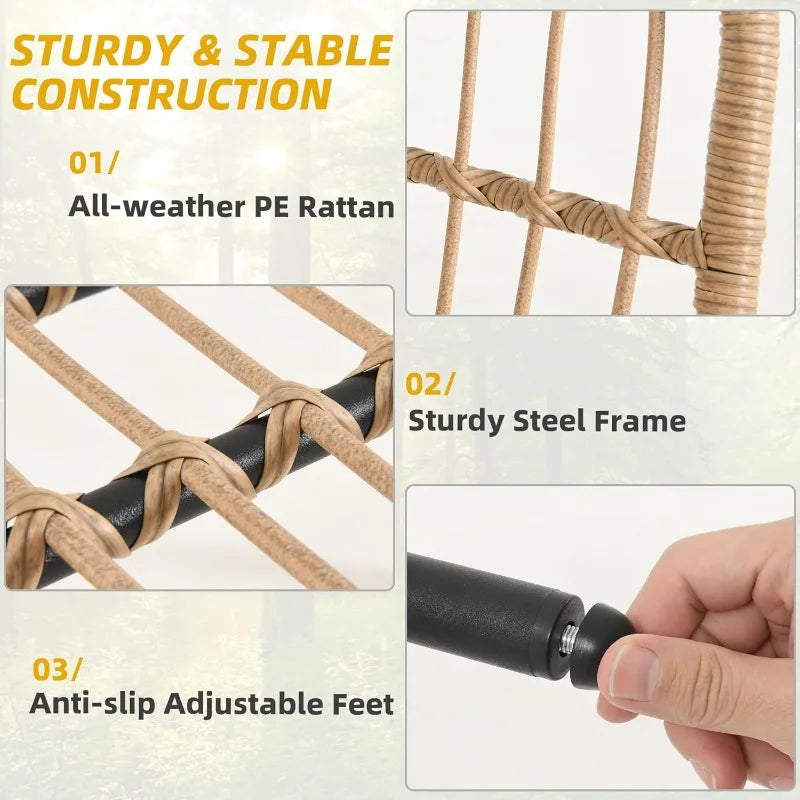 Durable Design: Our outdoor sectional sofa boasts a sturdy powdered steel frame wrapped in resilient PE wicker. Each piece supports up to 259 lbs (single) and 529 lbs (love-seat). Equipped with adjustable non-slip feet for stability on any terrain