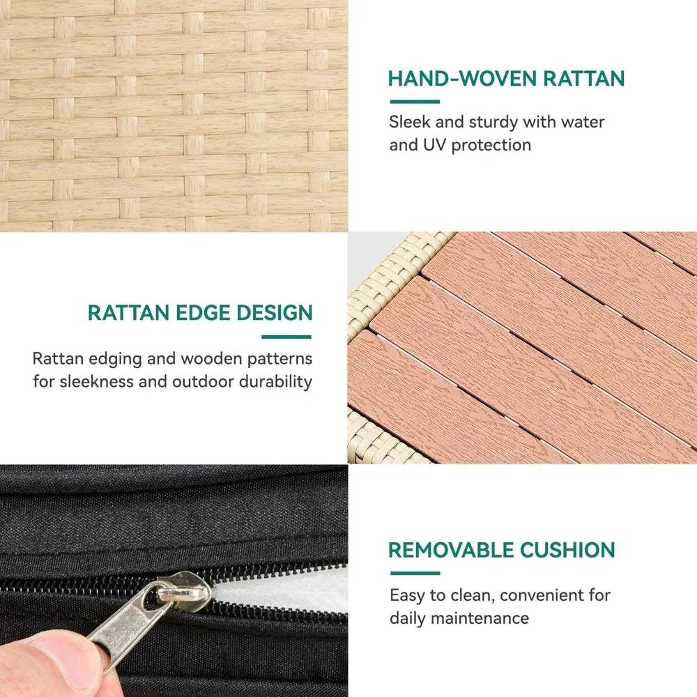 - STURDY & DURABLE: High-end handwoven rattan is braced with a solid steel frame for weather resistance and enduring durability; Wide seat space, comfy cushions, and a detachable waterproof cover combine to bestow deluxe comfort & easy maintenance