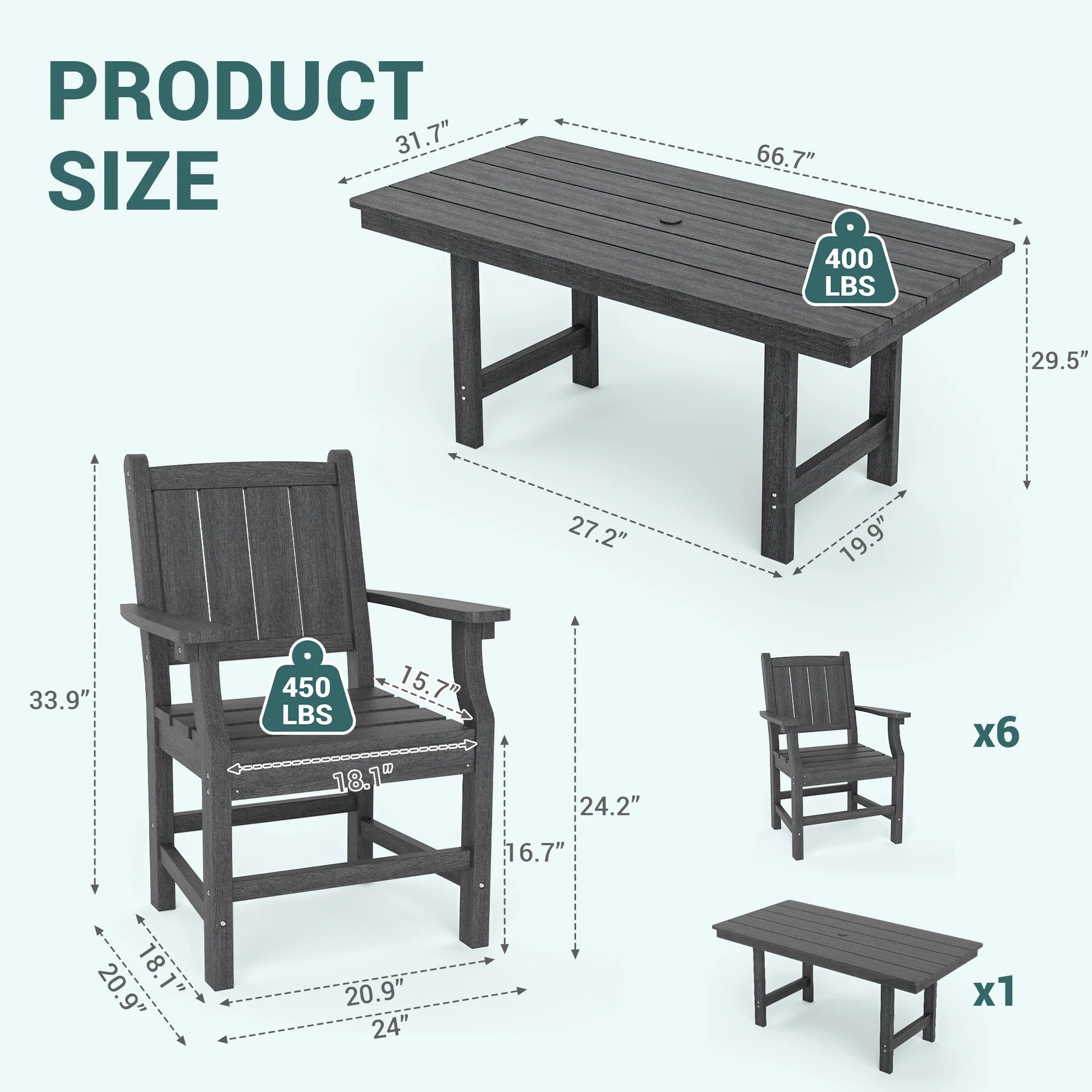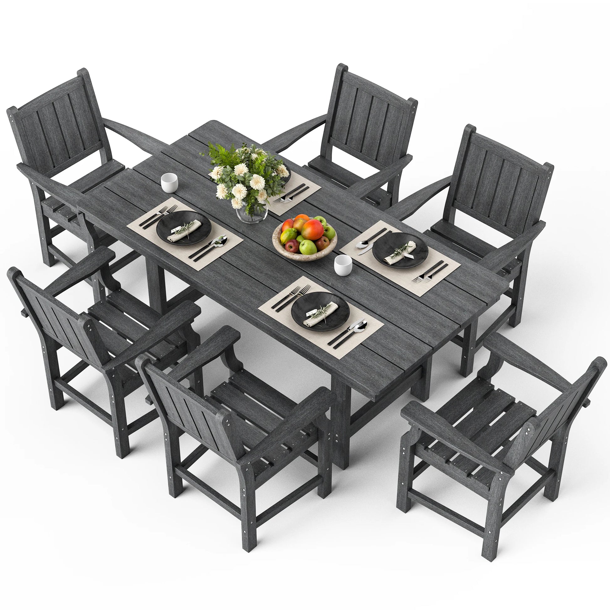 MALAGA 7 PCS Outdoor Dining Set, 450 LBS HDPE Outdoor Table and Chairs, Oversized Patio Dining Sets with Elegant Armrest, All-Weather