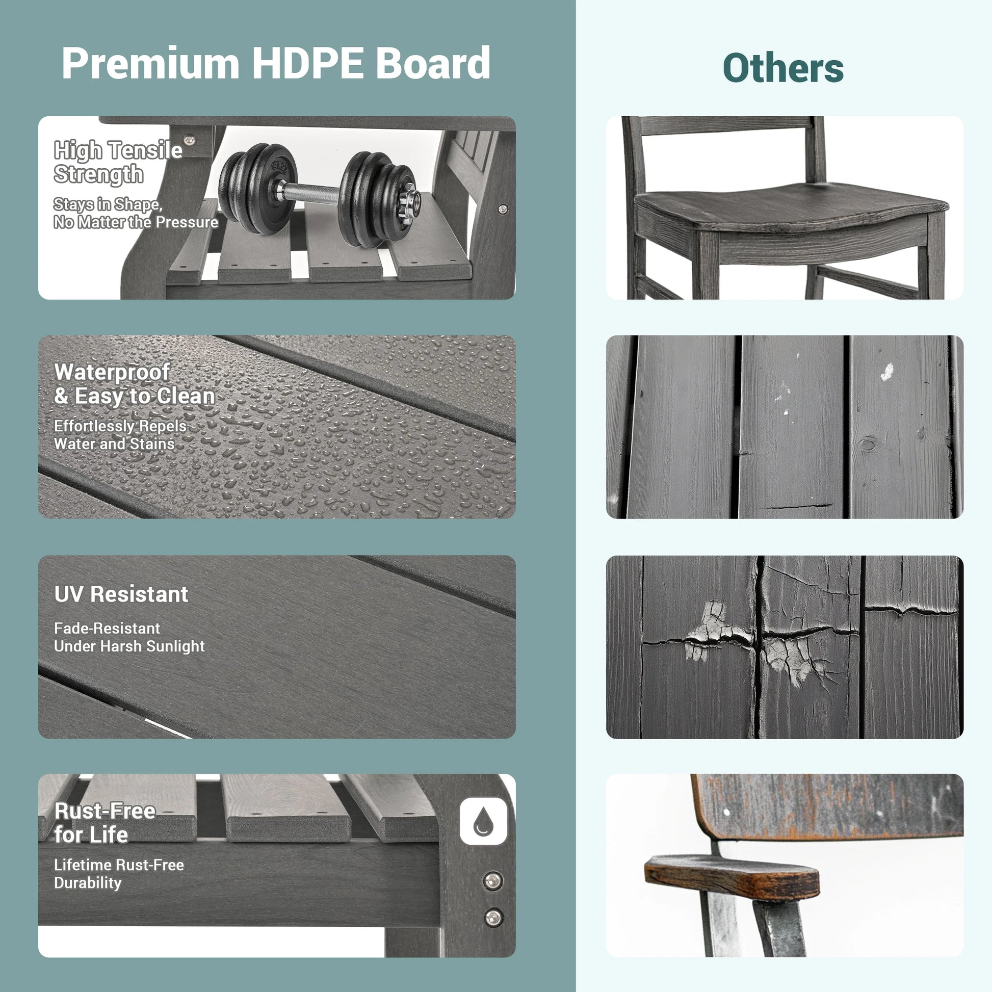 Crafted from durable HDPE, this outdoor dining set ensures longevity and resistance to weather elements.