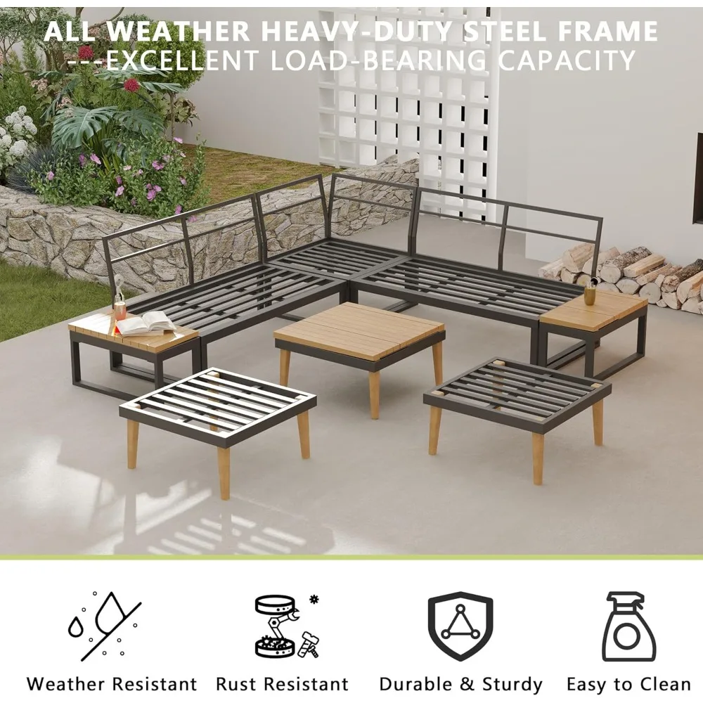 - Durable Construction---Constructed with a heavy-duty powder-coated metal frame, this outdoor sectional sofa set is built to resist rust, corrosion, and all weather conditions. Reinforced thick wood legs ensure exceptional weight capacity and long-term durability.