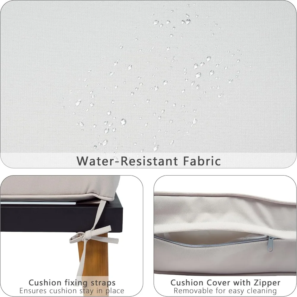 - Solid Acacia Wood---The table top and legs are crafted from natural solid acacia wood, showcasing exquisite craftsmanship with superior load-bearing capacity and durability. Waterproof features ensure long-lasting use, while the natural wood elements add a decorative touch to this patio conversation set. The open-slat design prevents water buildup and speeds up drying after rain. Two matching side tables offer convenient spots to place drinks, snacks, or décor.