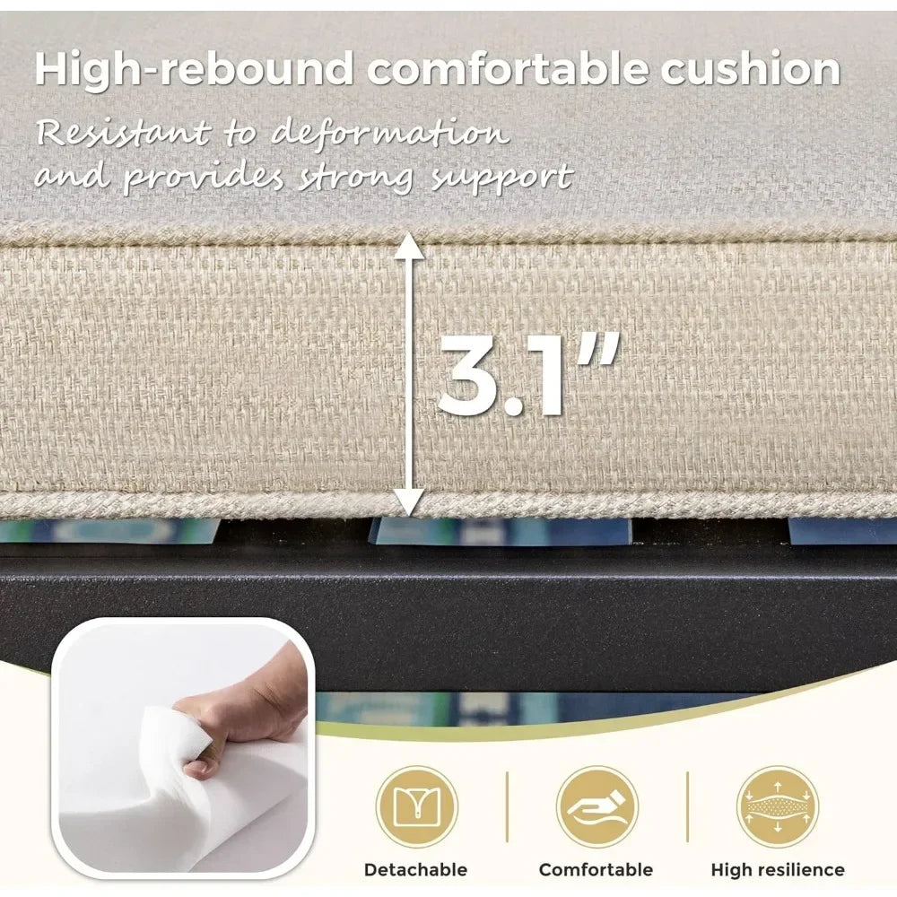 Thickened Sponge Cushion :Our cushion is made of 3.1-inch premium thickened high resilience sponge, which is soft and not easy to deform, bringing an unparalleled sitting experience. Patented CushionPro outdoor fabric has advanced water, dirt and stain resistance for easy maintenance. Equipped with non-slip straps, the details show the noble quality.