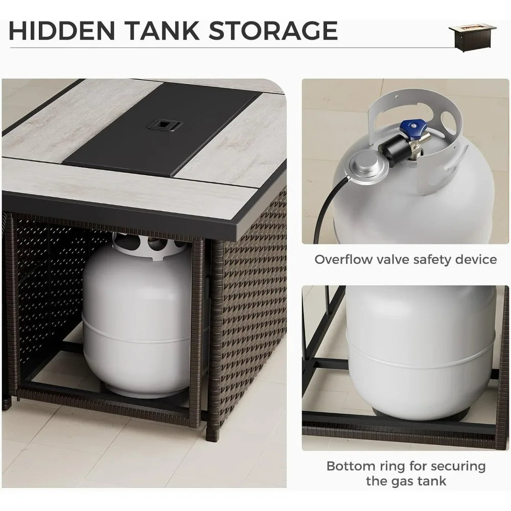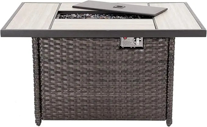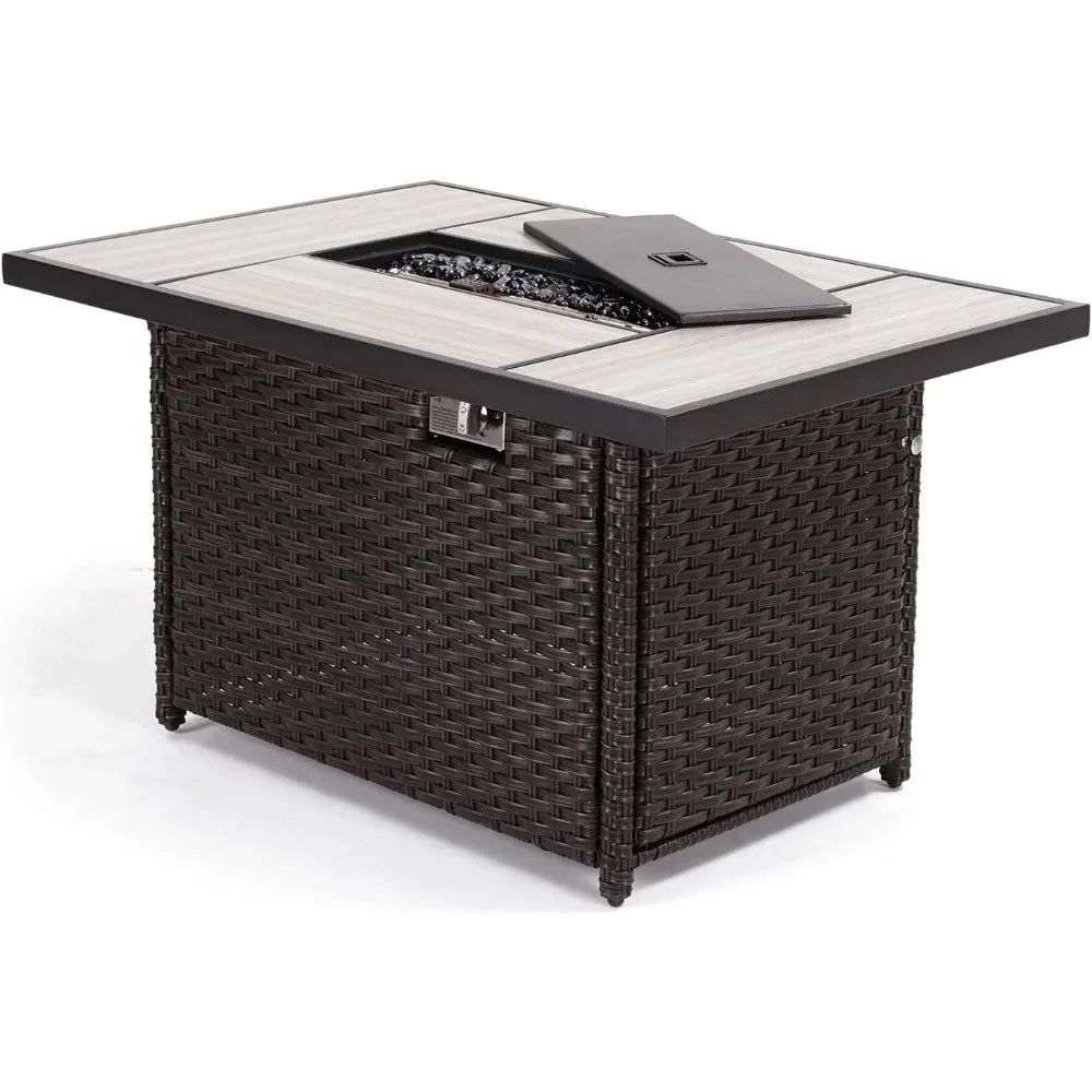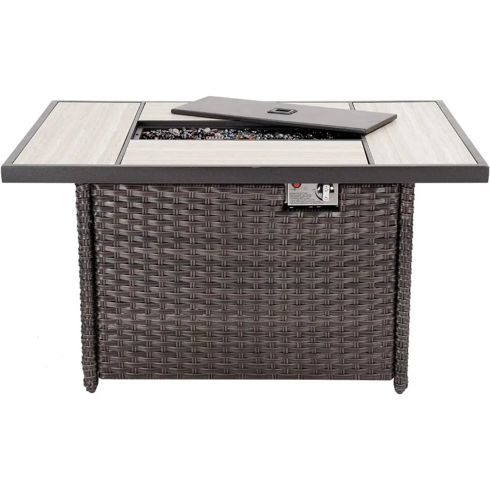 Outdoor Propane Fire Pit Table with Cover/Lid for Patio, 43 inch 60,000 BTU,Wicker/RectangleColor: Brown