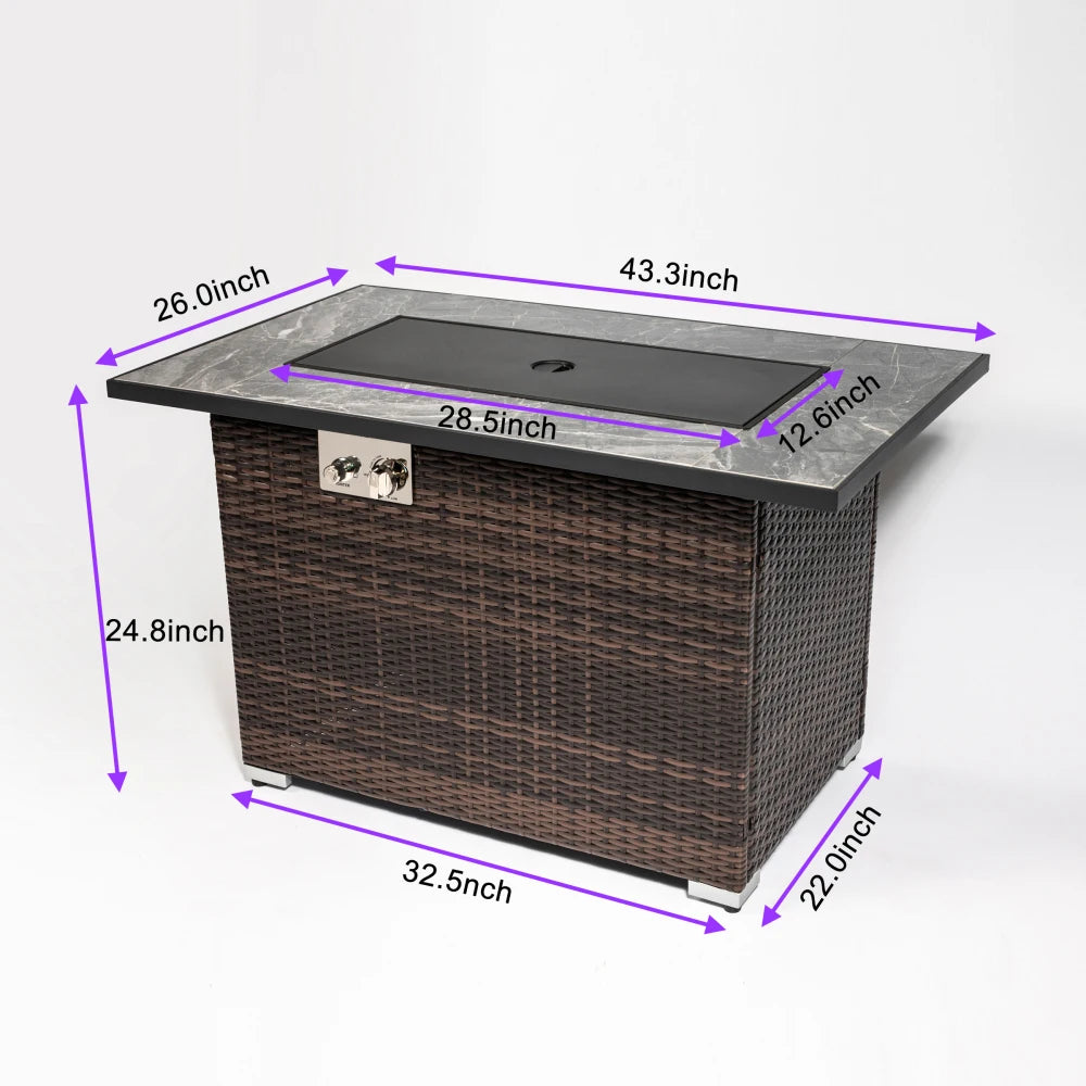 - Rectangular Rattan Gas Fire Pit Table with Rain Cover