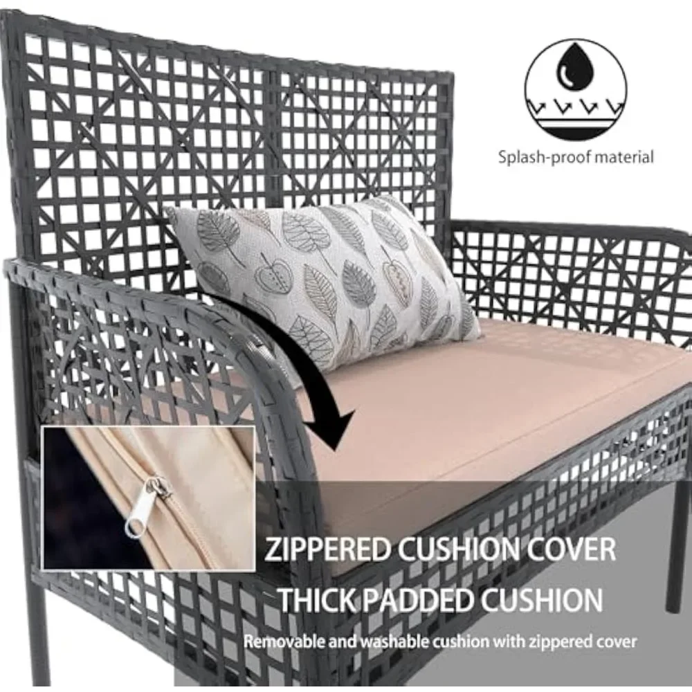 - 2.Multiple excellent materials:All weather hand woven rattan,hollow out design is more exquisite.Taking you from modern style to elegant boho style.Rust proof powder coated steel frame provides you with sturdy support.Upgraded fabric with anti fading solution dye provides better splash resistance and higher color fastness, while the seat cushion is soft and cozy