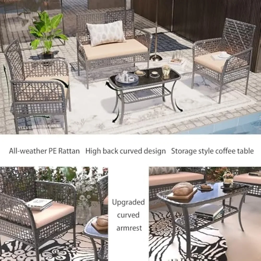 - 1.Upgrade & Practical Design:The unique ergonomic curved armrest design and curved high back gives you excellent comfort.High and supportive backrest can relieve the pressure of your waist and neck.The 2-Layer storage design wicker rattan table provide extra storage space for sundries.