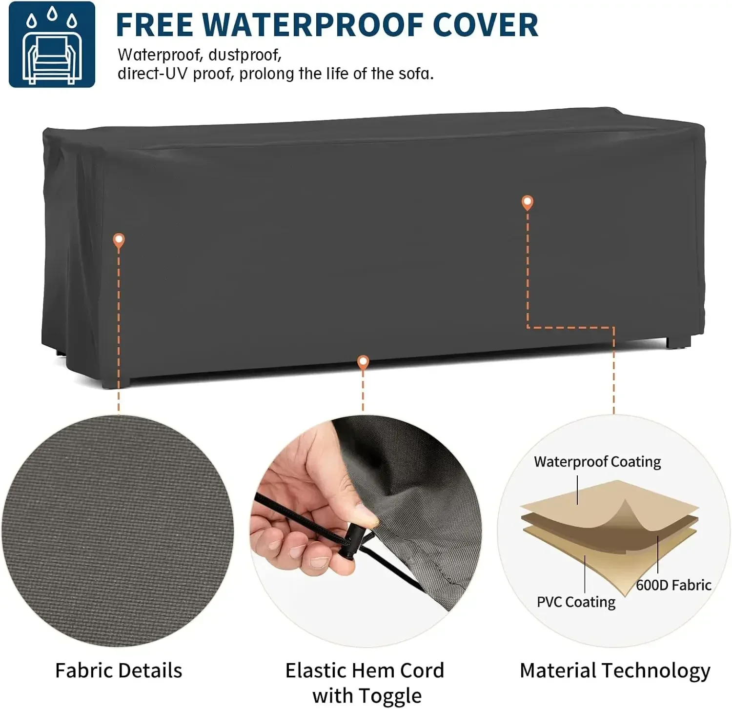 - Included Waterproof Cover: In order to increase the practicality and protection of the outdoor patio furniture, the patio couch comes with waterproof covers. The cover protects your patio furniture from rain, dust, dirt, and sunlight when not in use, preserving its quality and appearance over time.