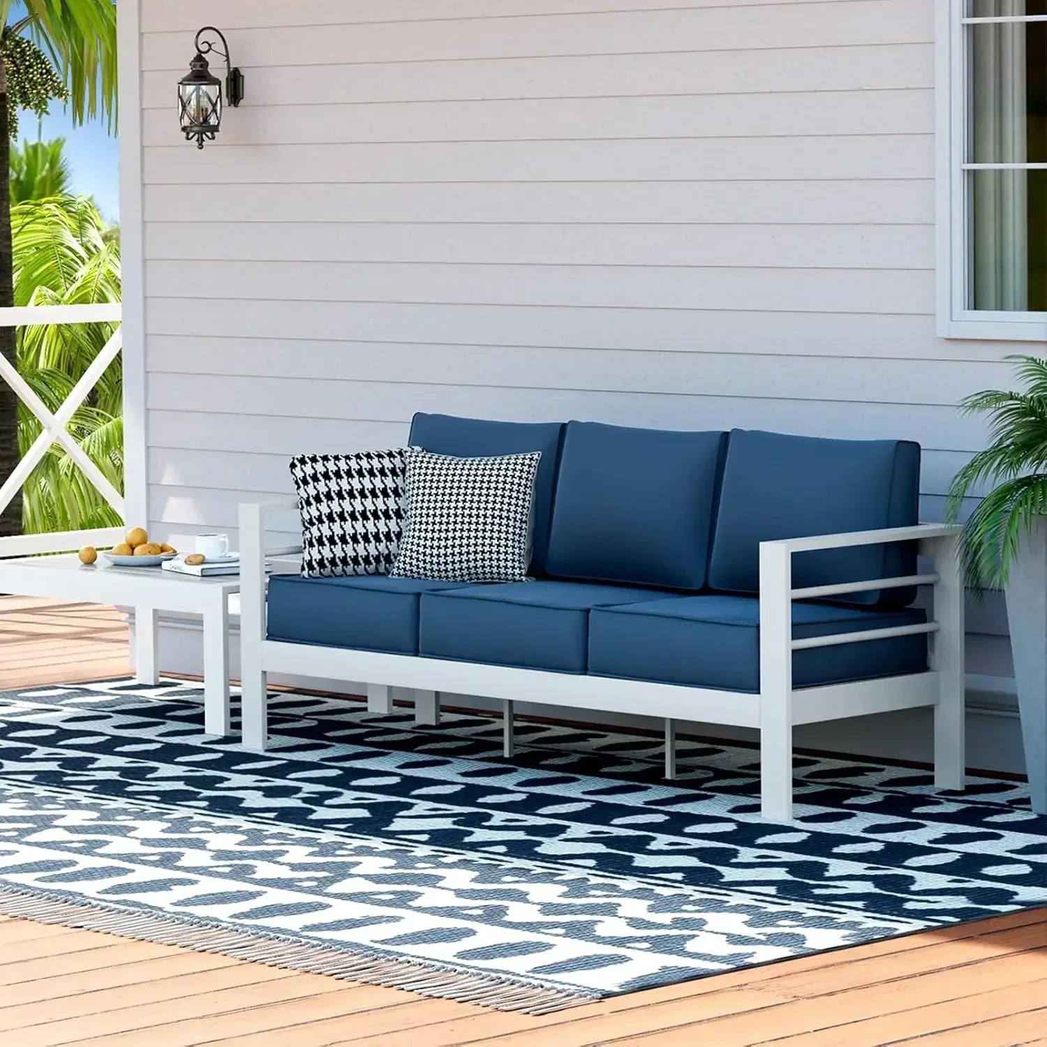 - Aluminum Frame, No Rust: The metal patio furniture is made of high quality aluminum, ensuring durability and long-lasting performance. The aluminum frame provides stability and corrosion resistance to withstand the harsh conditions, making the patio sofa set suitable for outdoor use.