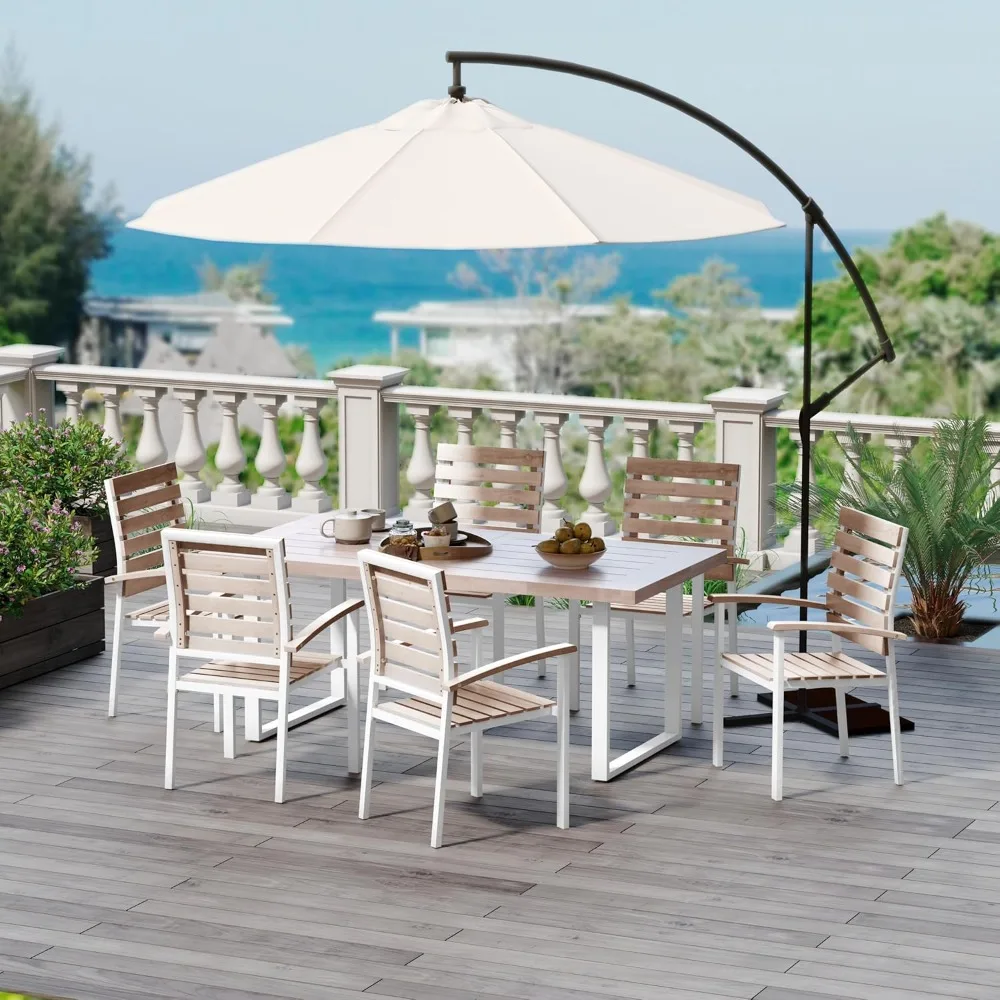 - Indoor & Outdoor Versatility---Crafted with a stylish blend of acacia wood and metal, this 7-piece dining set offers a modern yet rustic charm. Perfect for both indoor dinners and outdoor gatherings, it seamlessly complements patios, gardens, porches, dining rooms, balconies, or decks. A great choice for creating a warm, inviting space for relaxation and entertainment.