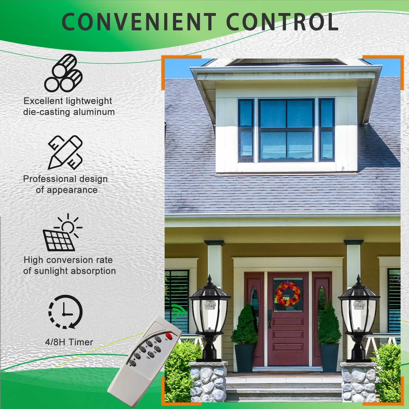Solar Powered Outdoor Post Light, Waterproof LED Pillar Lamp for Garden, Yard, and Patio - Auto On/Off(2-pack)