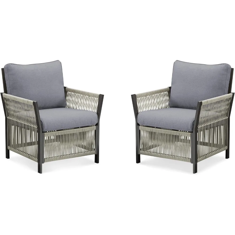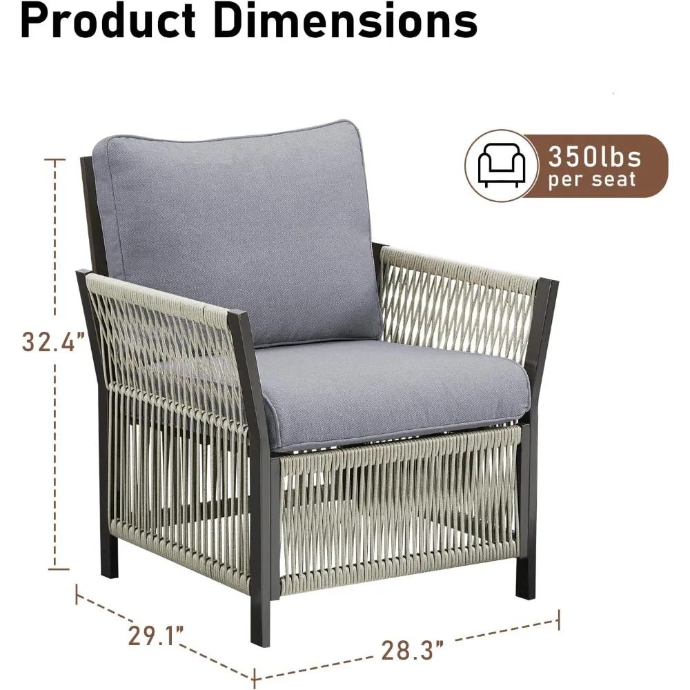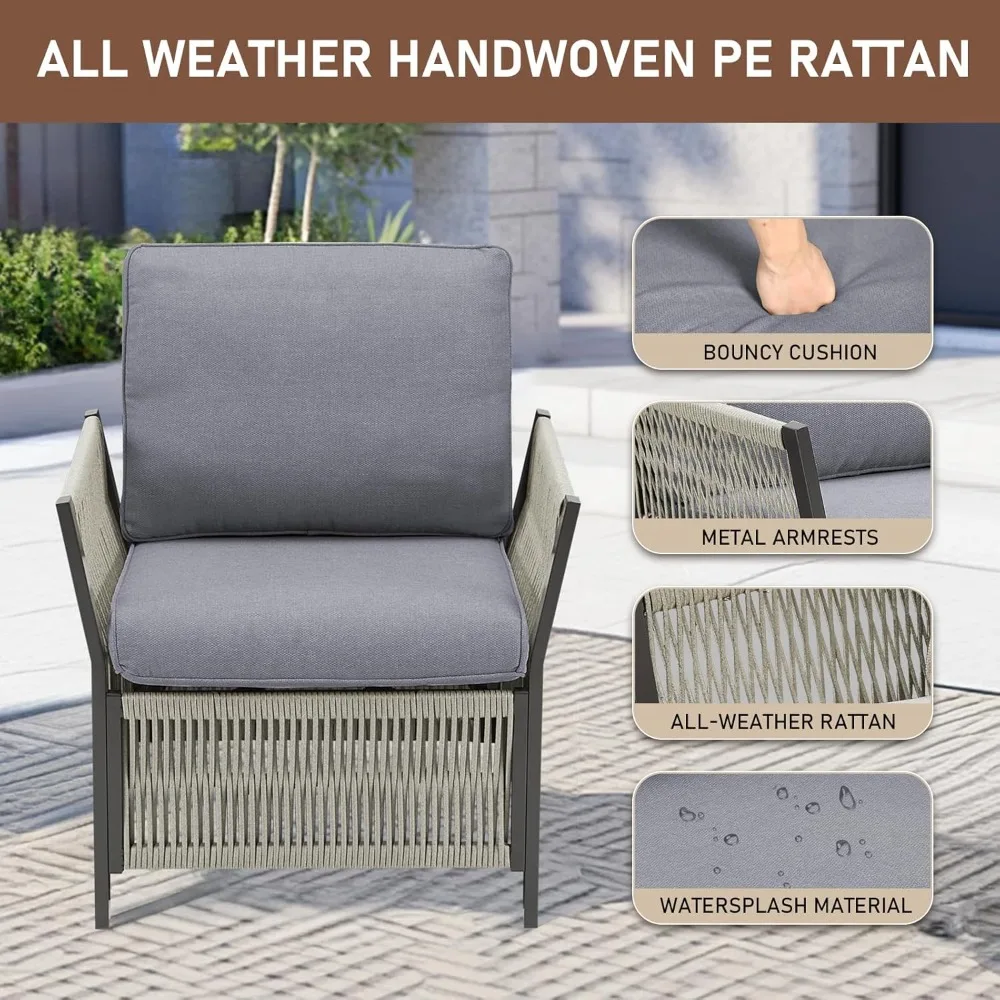 - Modern Minimalist Design: This modern outdoor furniture set stands out with its minimalist design, combining faux rope rattan and exposed metal tubing for a sleek look. Unlike the bulky full-width rattan designs, this set offers a lighter, more refined aesthetic. The contrast between the exposed tubing and the rattan color adds a contemporary touch to any outdoor patio furniture set