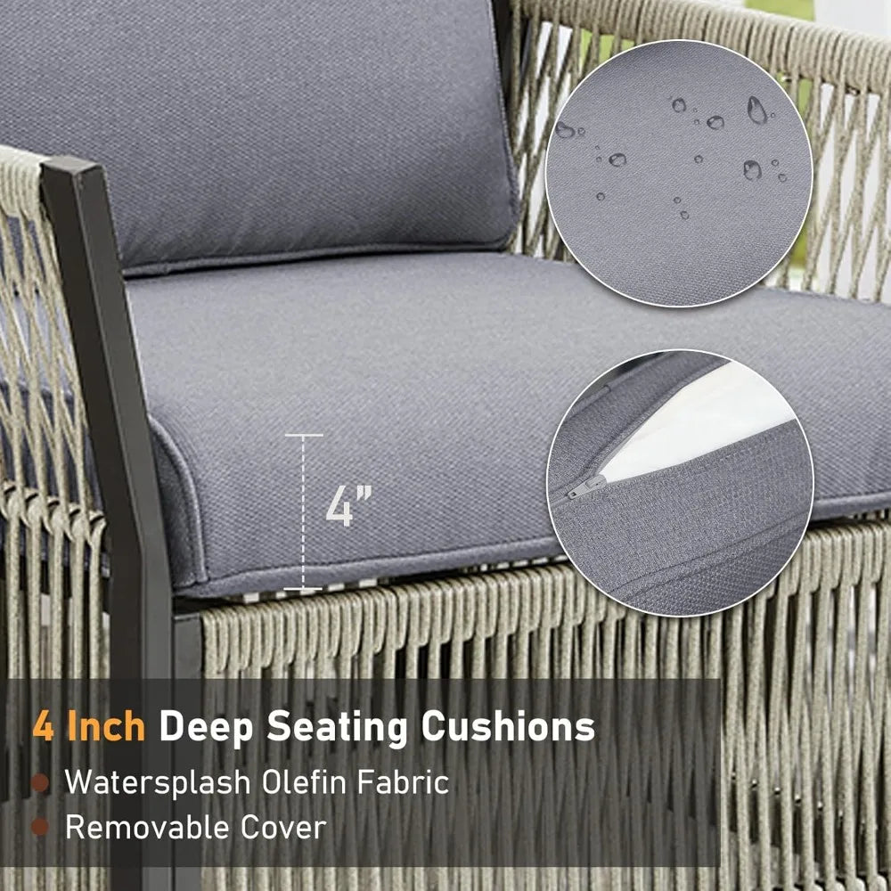 - Durable and Easy-to-Maintain Fabric: The cushions are crafted from Olefin fabric, offering 800 hours of UV protection and water resistance, making this outdoor couch ideal for all-weather use. The covers are removable and washable, featuring hidden zippers for easy cleaning. Enjoy a low-maintenance patio set that stays fresh and inviting throughout the seasons
