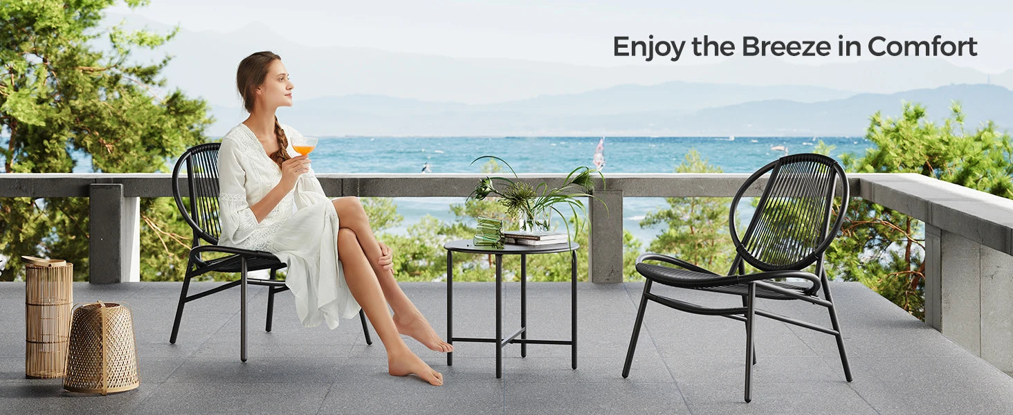 Bring Vacation Vibes to Any Space: The modernist aesthetic brings a retro Mexican resort vibe to terraces, decks, and patios. Relax outdoors on this Acapulco chair set and enjoy a good breeze, or use it indoors? Certainly! This Acapulco chair set will instantly transform your space into the most coveted corner.
