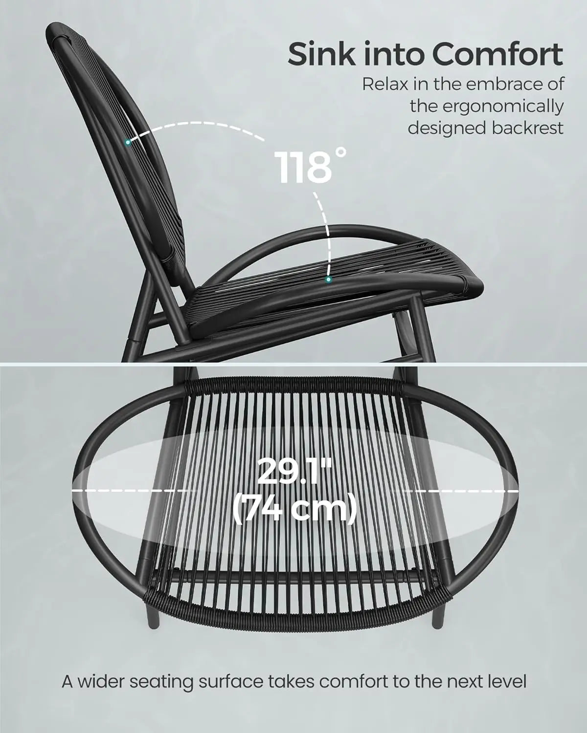 - Single Chair Size: 29.1"L x 26.8"W x 30.7"H (68 x 74 x 78 cm)