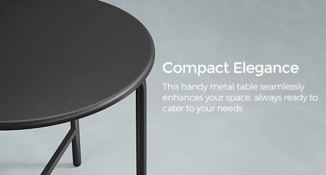 This compact metal table seamlessly enhances your space, always ready to cater to your needs