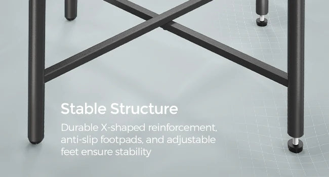 Durable X-shaped reinforcement, anti-slip footpads, and adjustable feet ensure stability